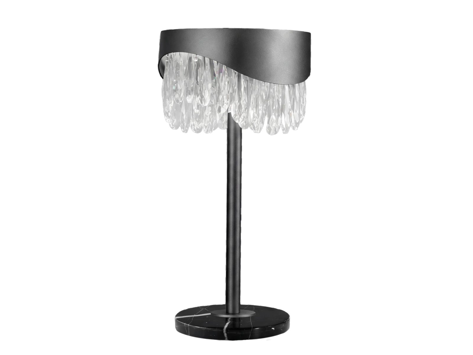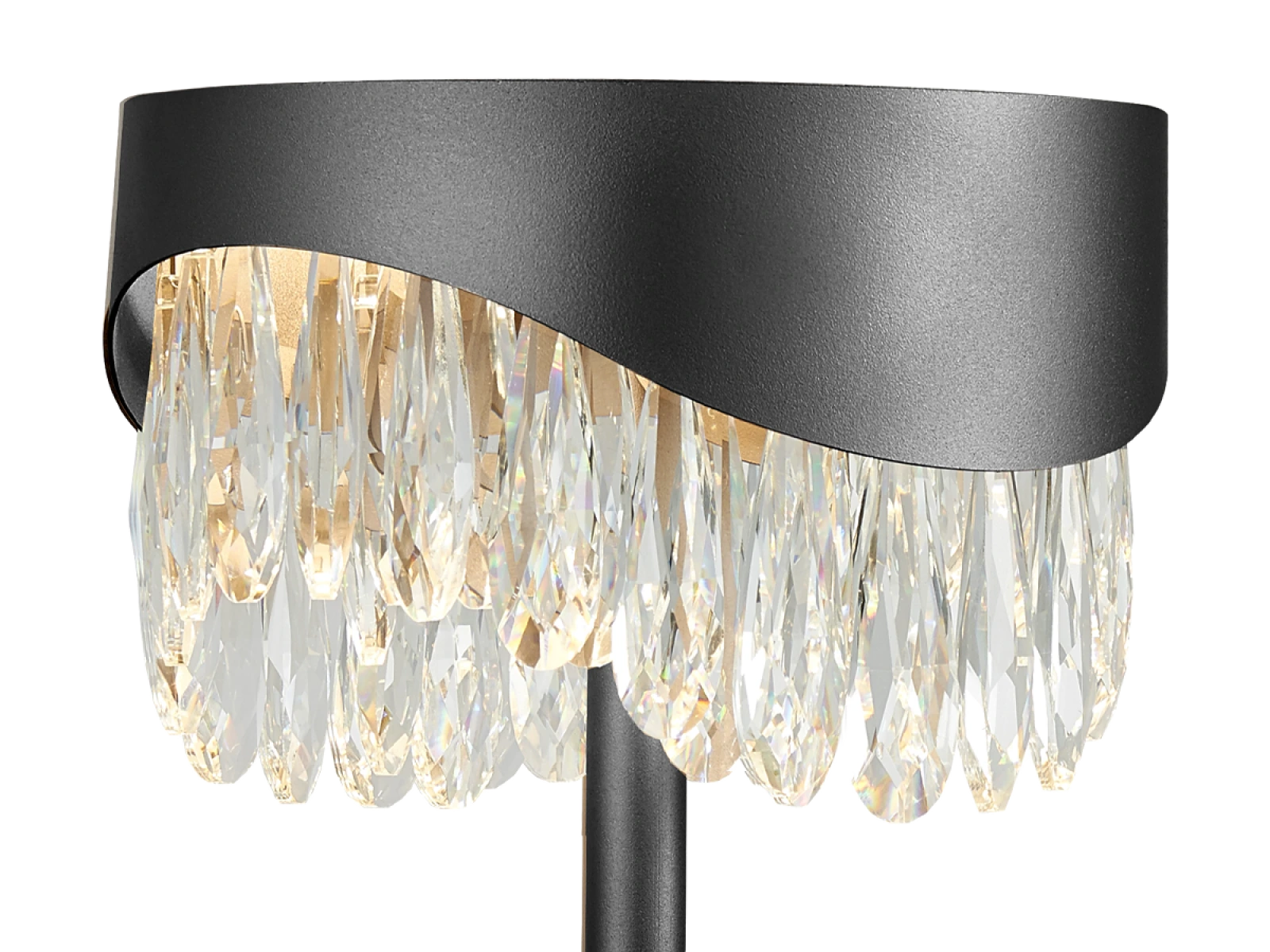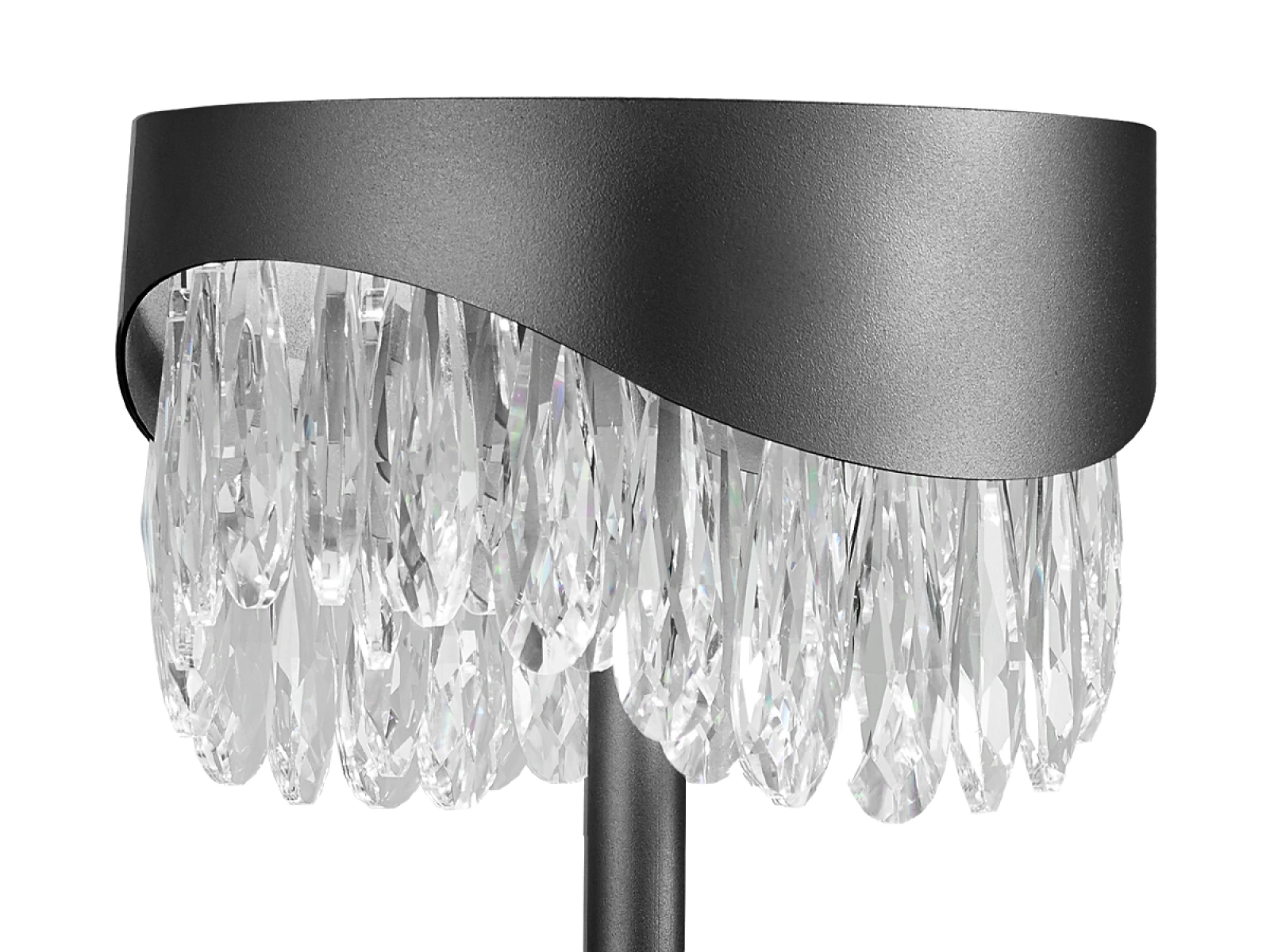 Svítidlo je vyrobeno z odolného kovu z nerezové oceli s prvotřídní povrchovou úpravou a jeho design doplňují precizně broušené krystaly, které podporují odraz a lom světla. Technologie zpracování zajišťuje stabilitu materiálu a jeho dlouhotrvající estetiku.