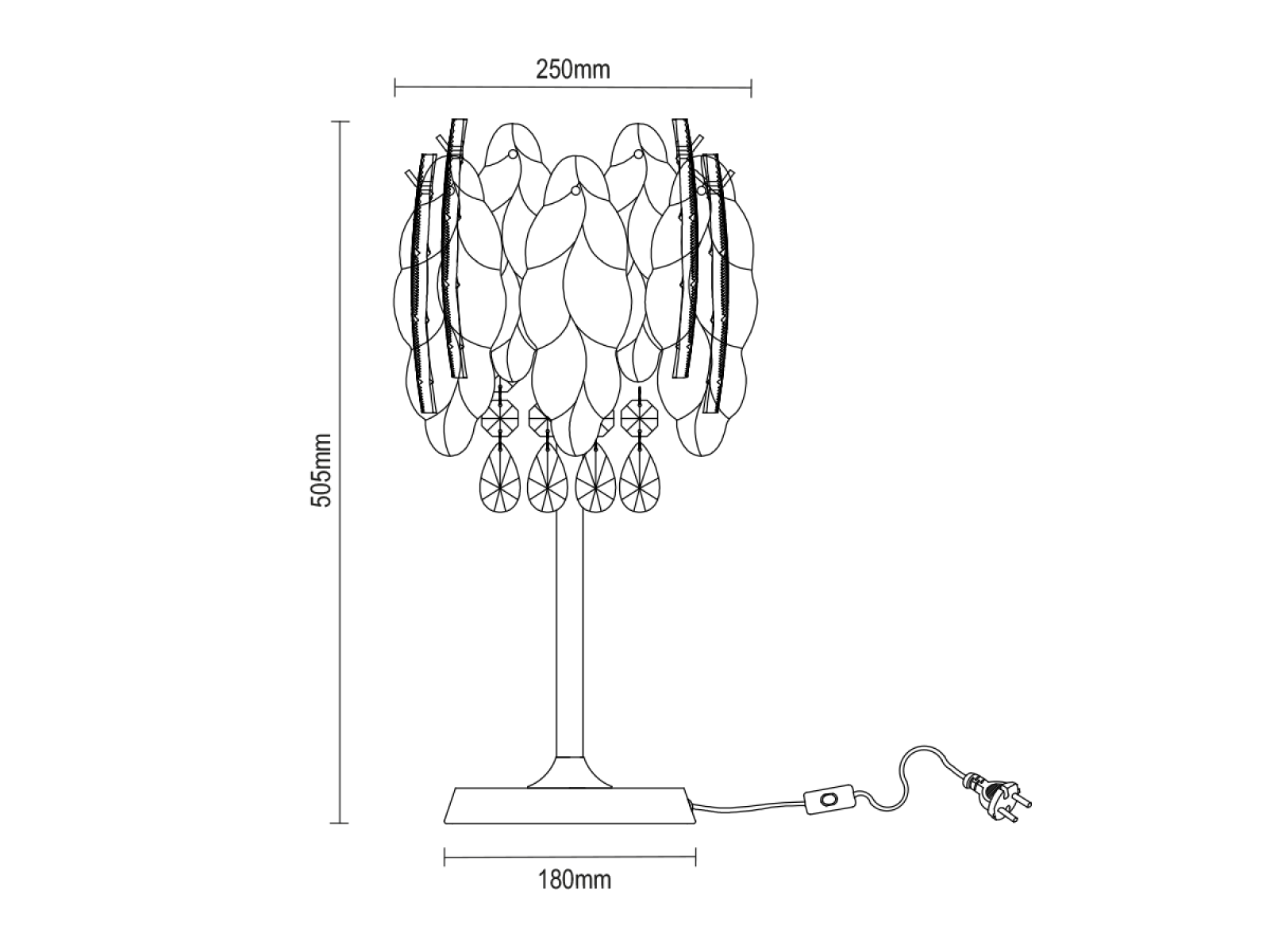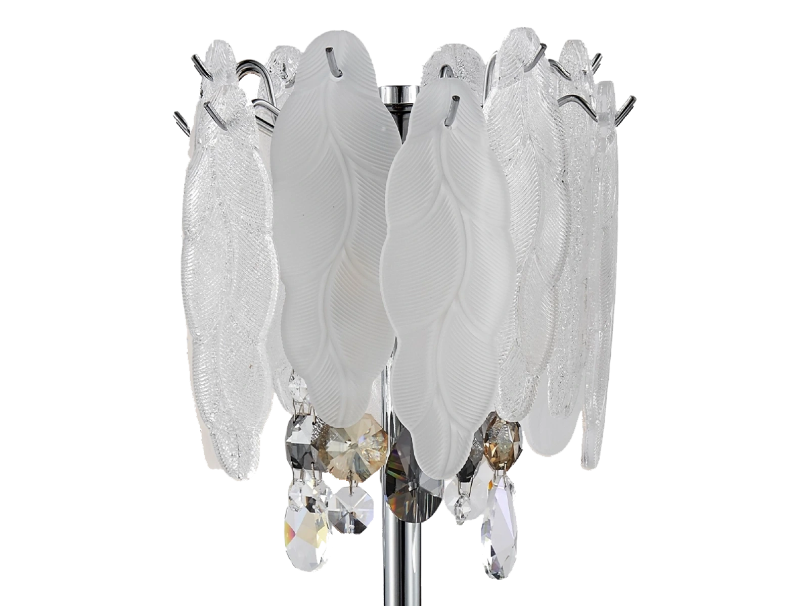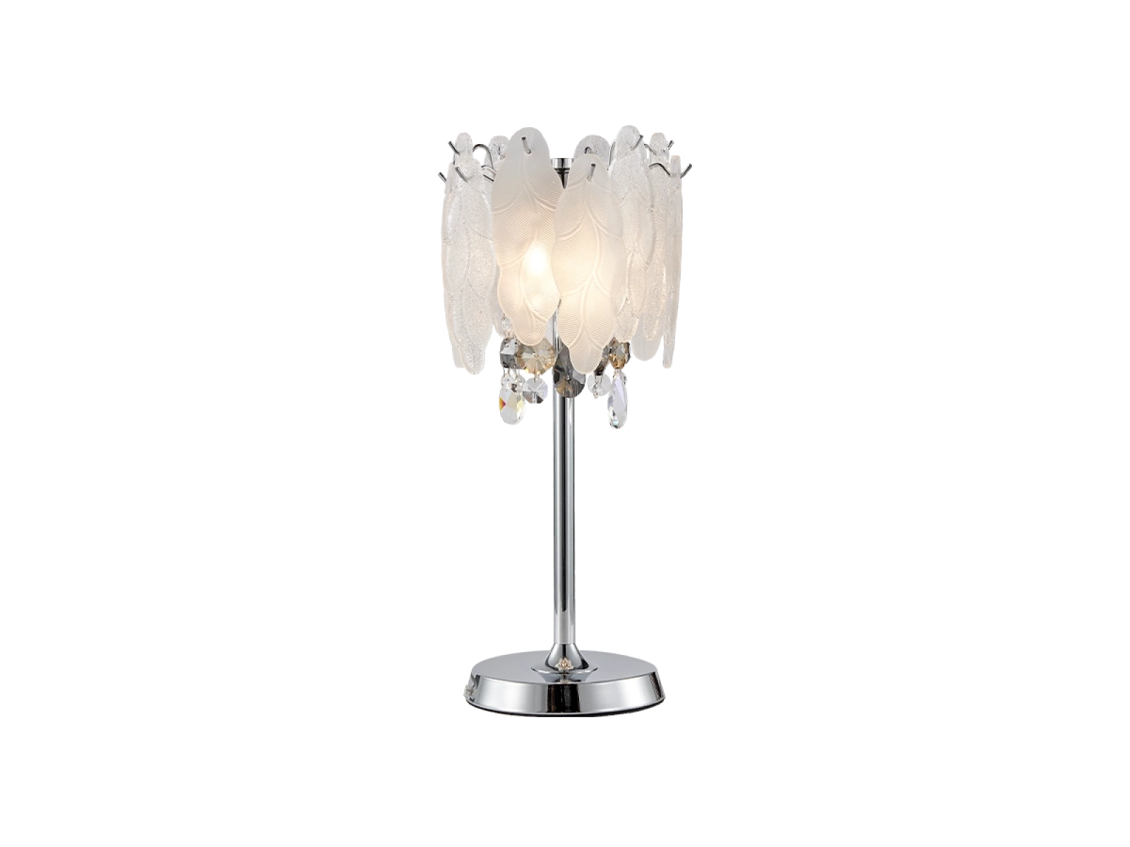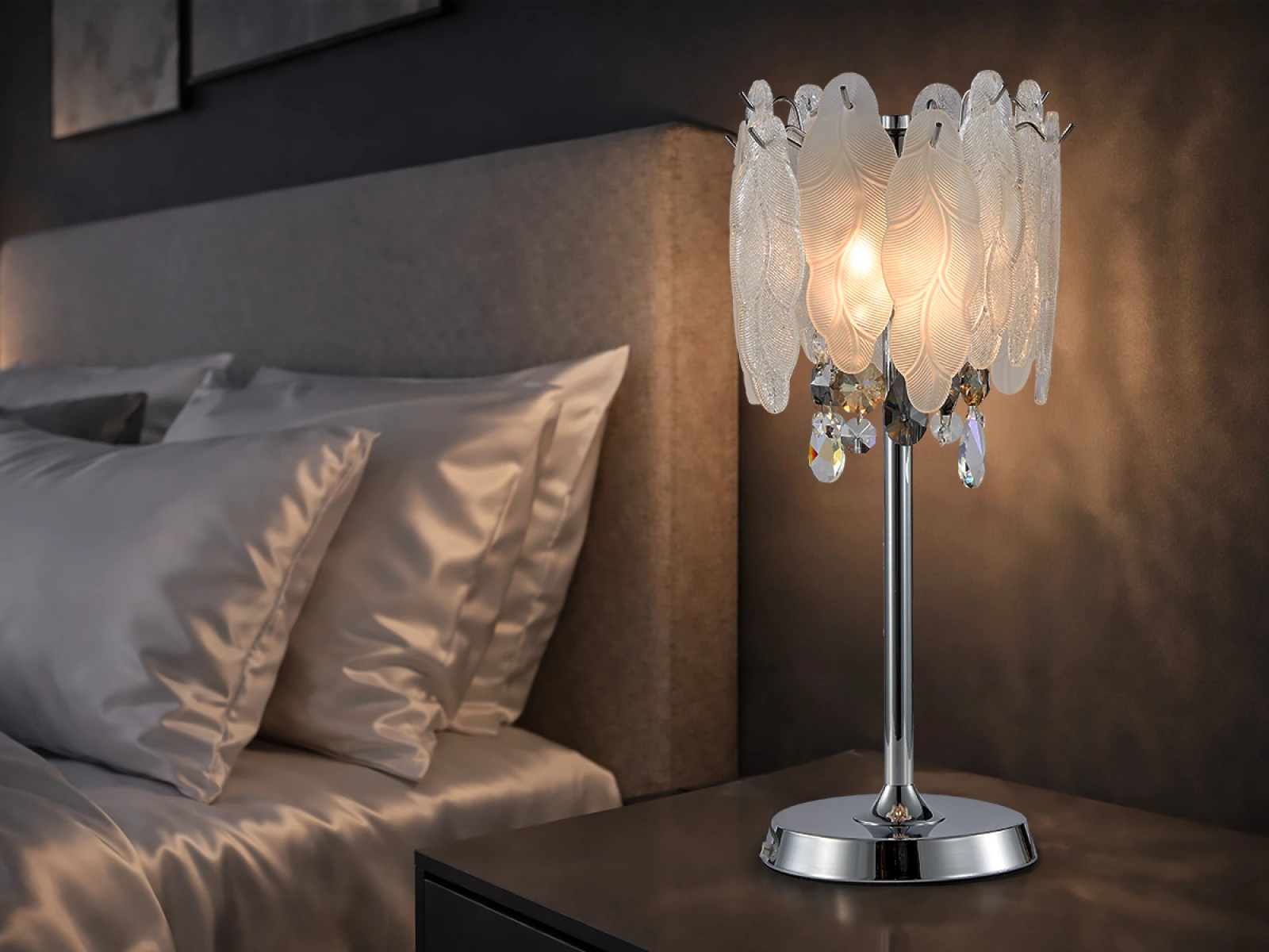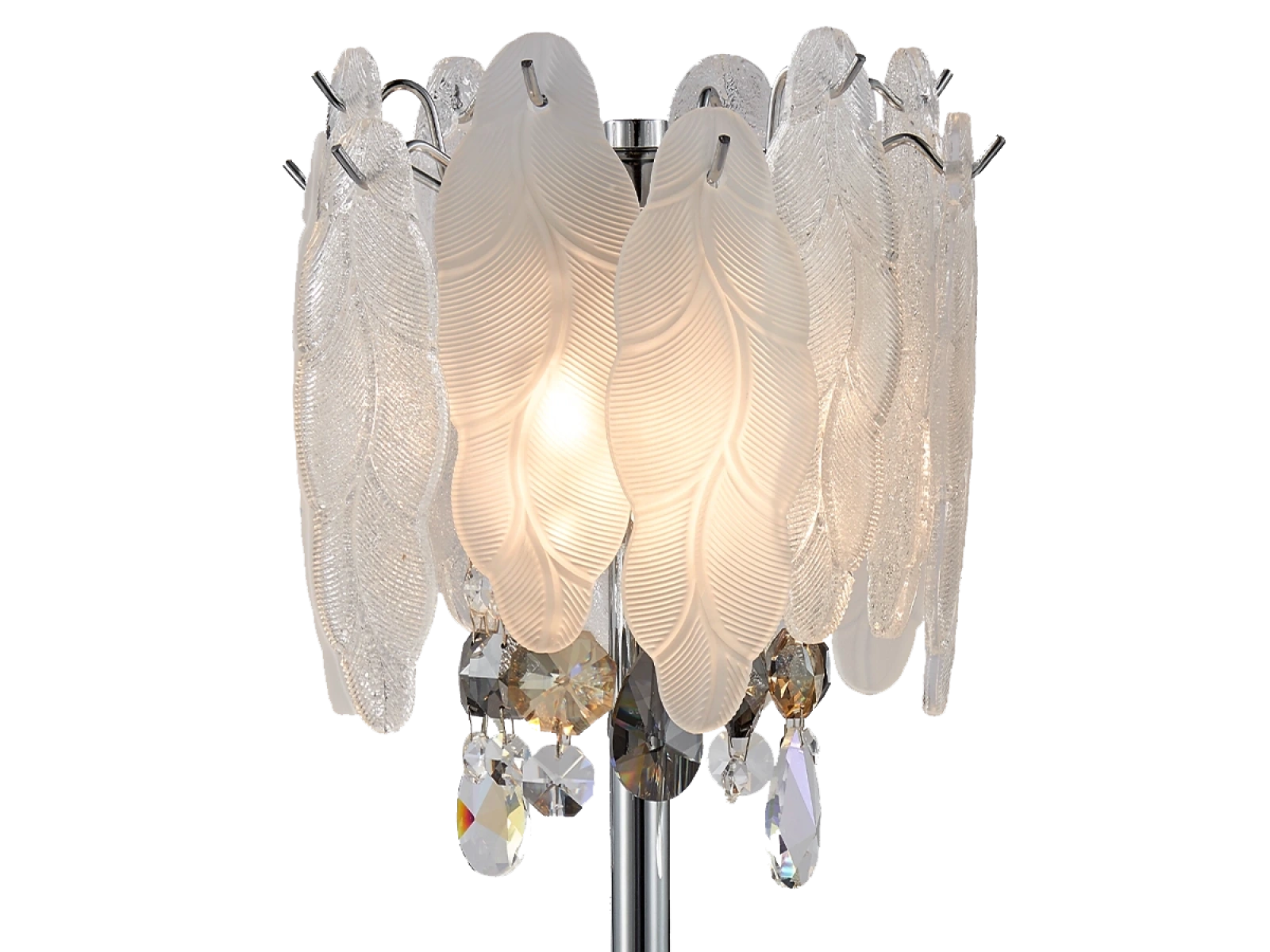 Kovovou konstrukci v kvalitním provedení doplňují skleněné a broušené křišťálové prvky, které jemně rozptylují světlo a vytvářejí decentní světelný efekt. Lampa působí vkusně a nadčasově, s důrazem na detail a kvalitní zpracování.