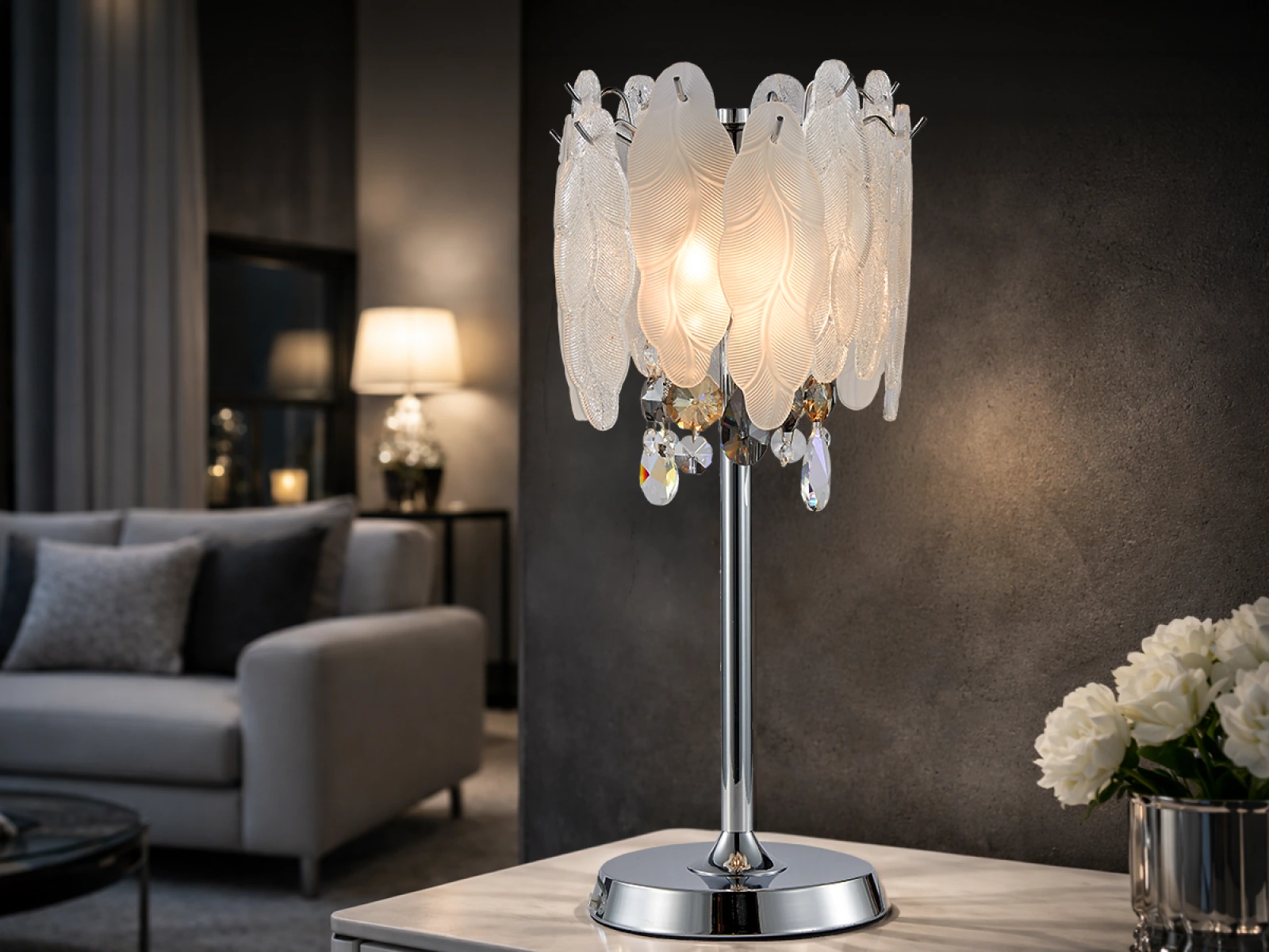 Stolní lampa GURU od společnosti VIZARDI je harmonickou kombinací elegance, jemného luxusu a moderního designu. Díky svému výraznému a zároveň vyváženému vzhledu se přirozeně začlení do obývacího pokoje, jídelny, ložnice i reprezentativních prostor, kde vytvoří příjemnou a stylovou atmosféru.