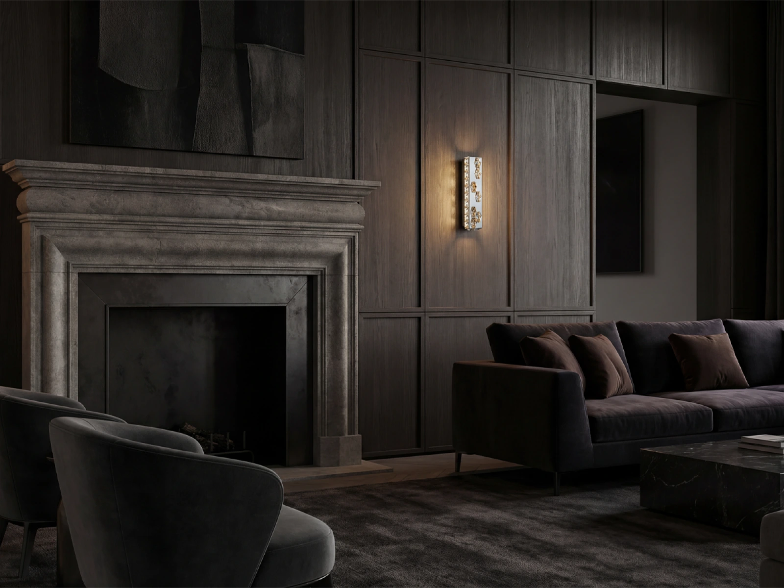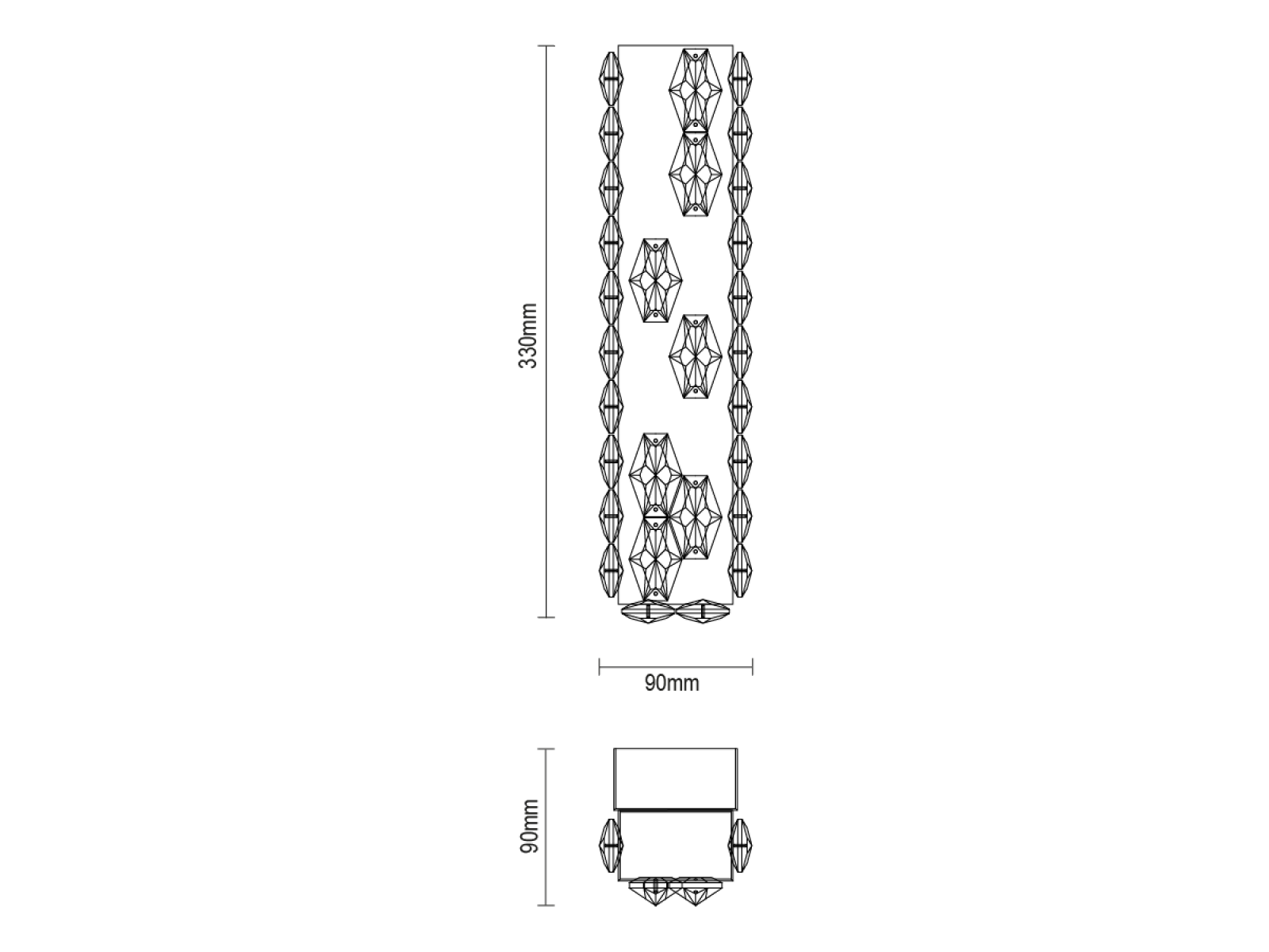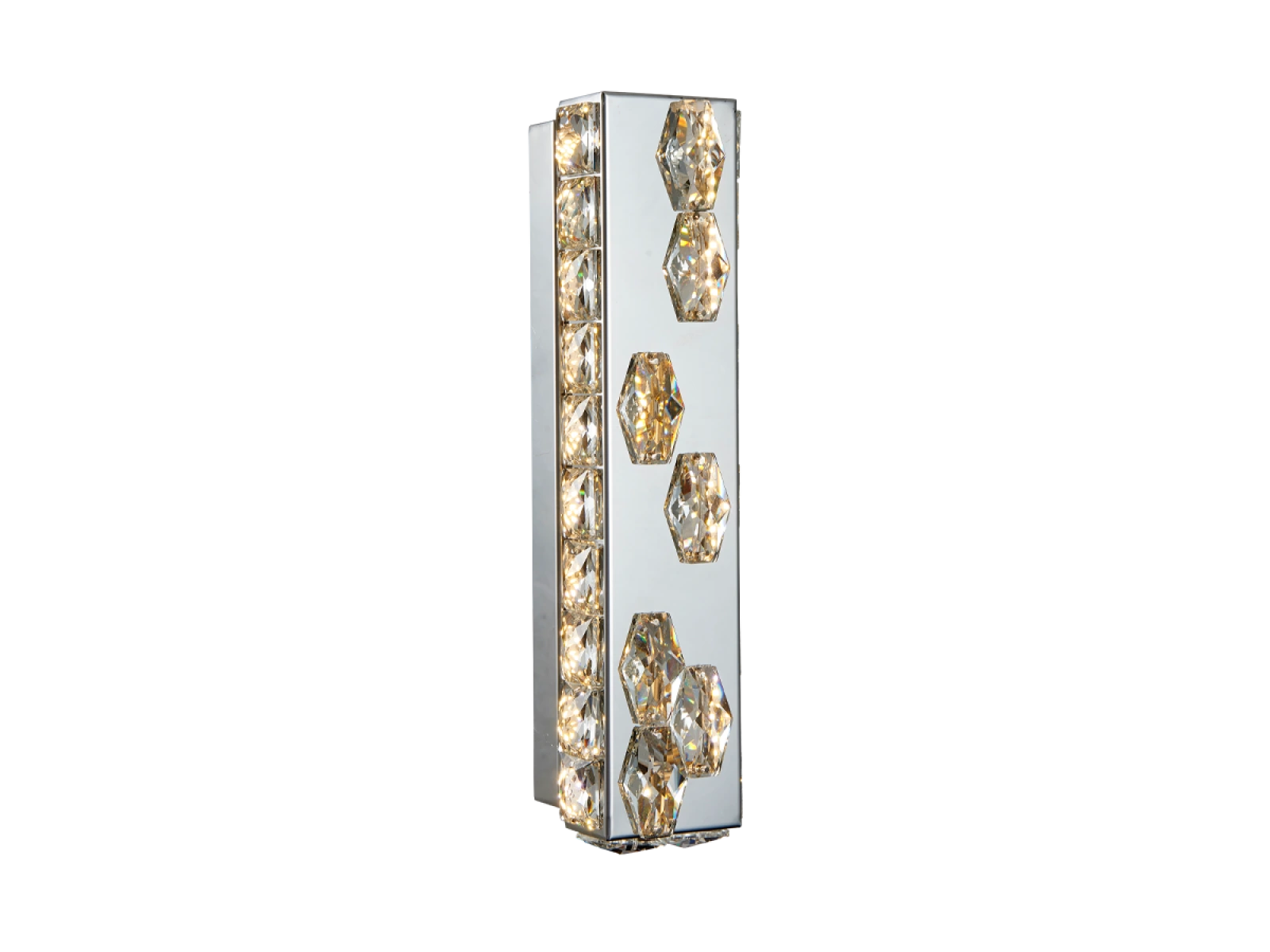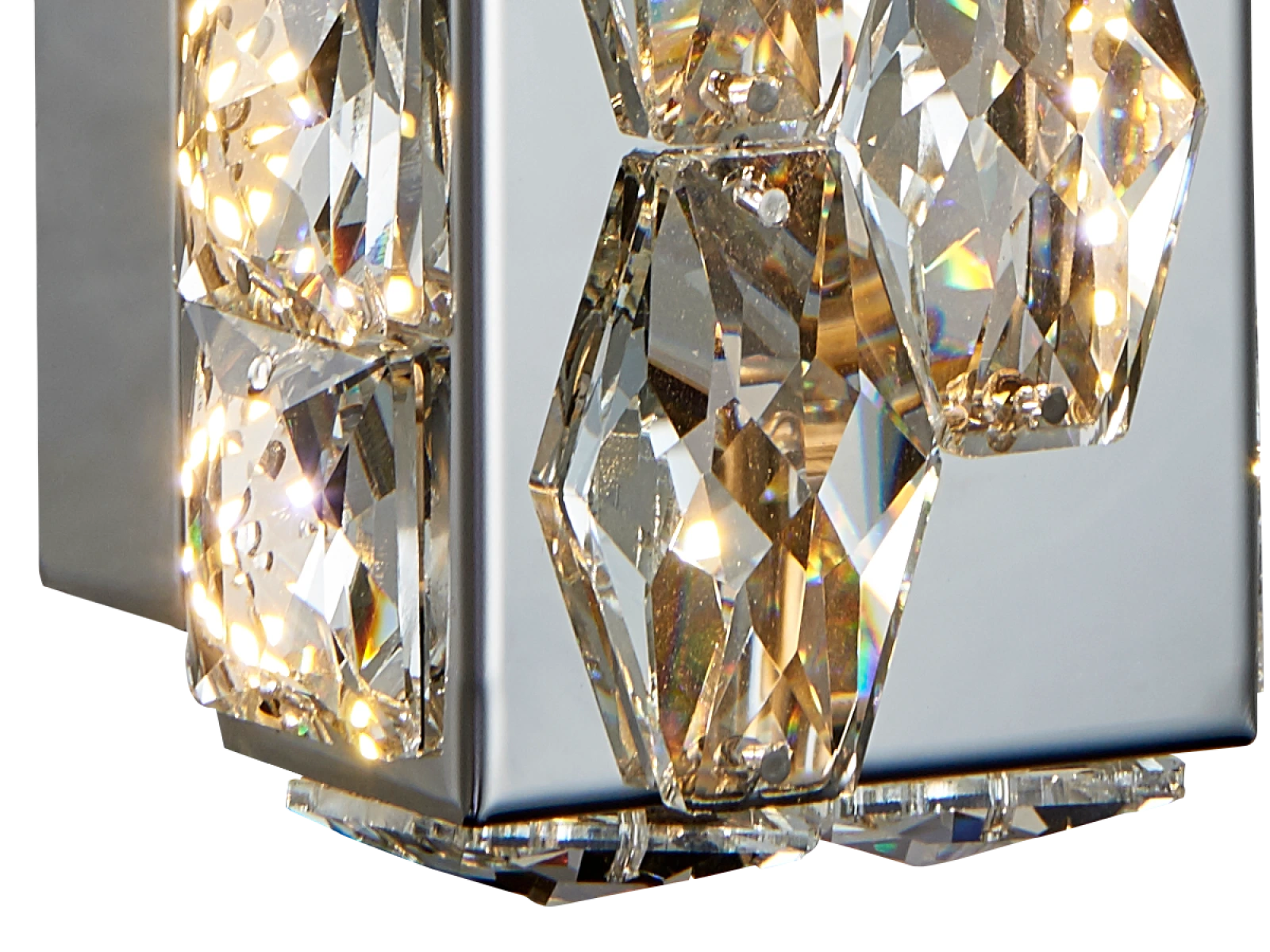 Svítidlo je vyrobeno z odolné nerezové oceli s chromovanou povrchovou úpravou a detailně vybroušenými krystaly, které zvýrazňují světelné efekty. Pokročilé zpracování materiálu zaručuje jeho dlouhodobou stabilitu a estetickou kvalitu.