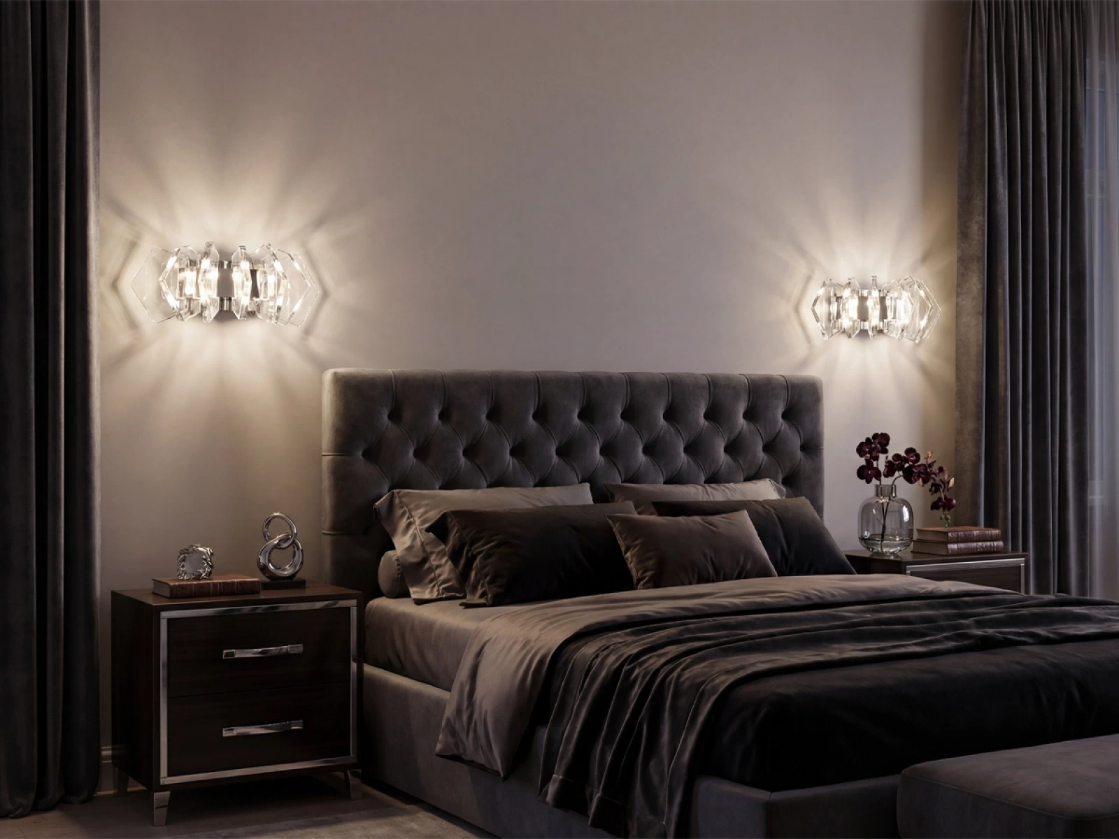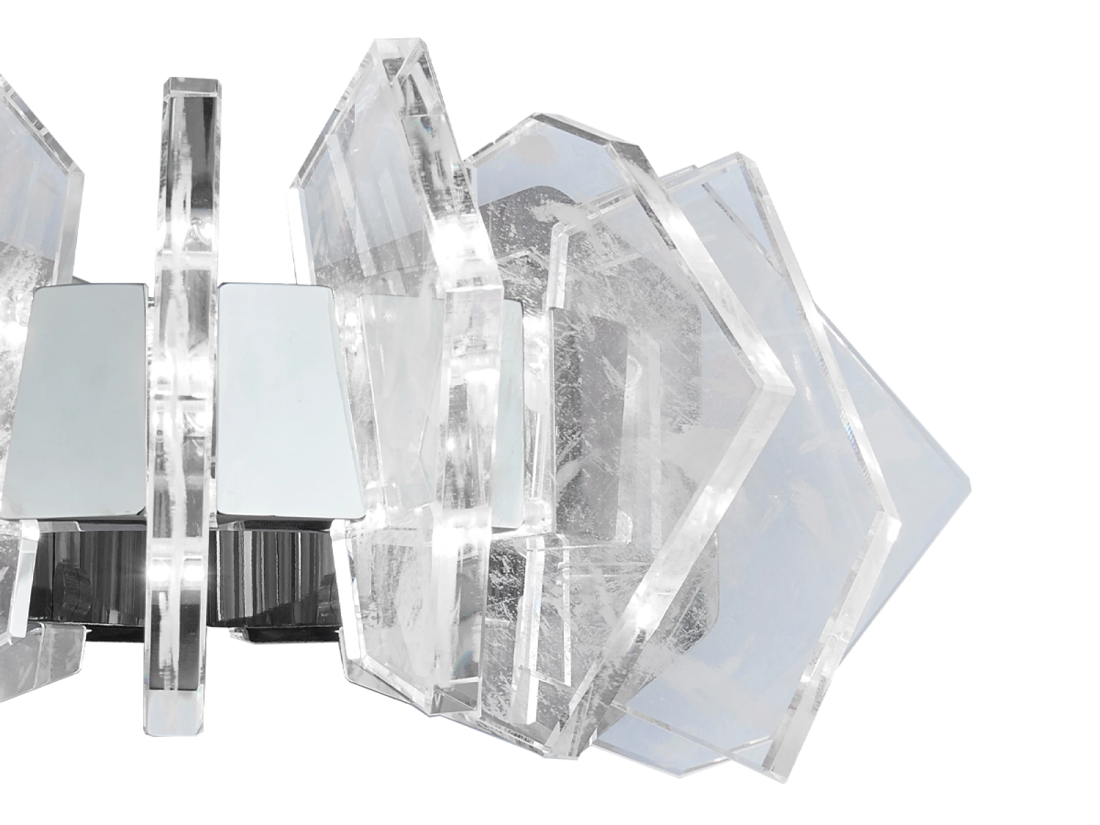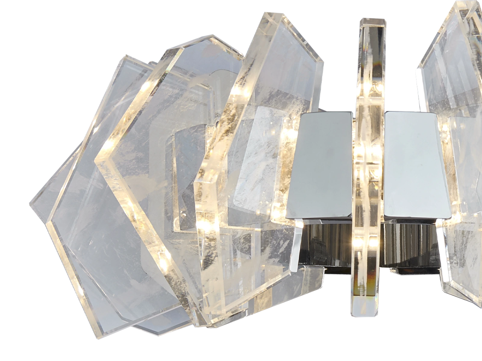 Konstrukce je vyrobena z vysoce kvalitní oceli s chromovanou povrchovou úpravou a doplněna originálními, přesně broušenými křišťálovými prvky, které zajišťují intenzivní lom a odraz světla. Výsledkem je luxusní světelná atmosféra s výrazným dekorativním efektem, která podtrhne charakter moderních i reprezentativních interiérů.