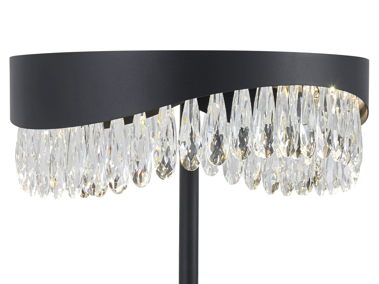 Základnu svítidla tvoří kov z nerezové oceli s prvotřídní povrchovou úpravou, doplněný precizně broušenými krystaly, které zvyšují efekt odrazu světla. Díky kvalitnímu zpracování si materiál zachovává stabilitu i vzhled.