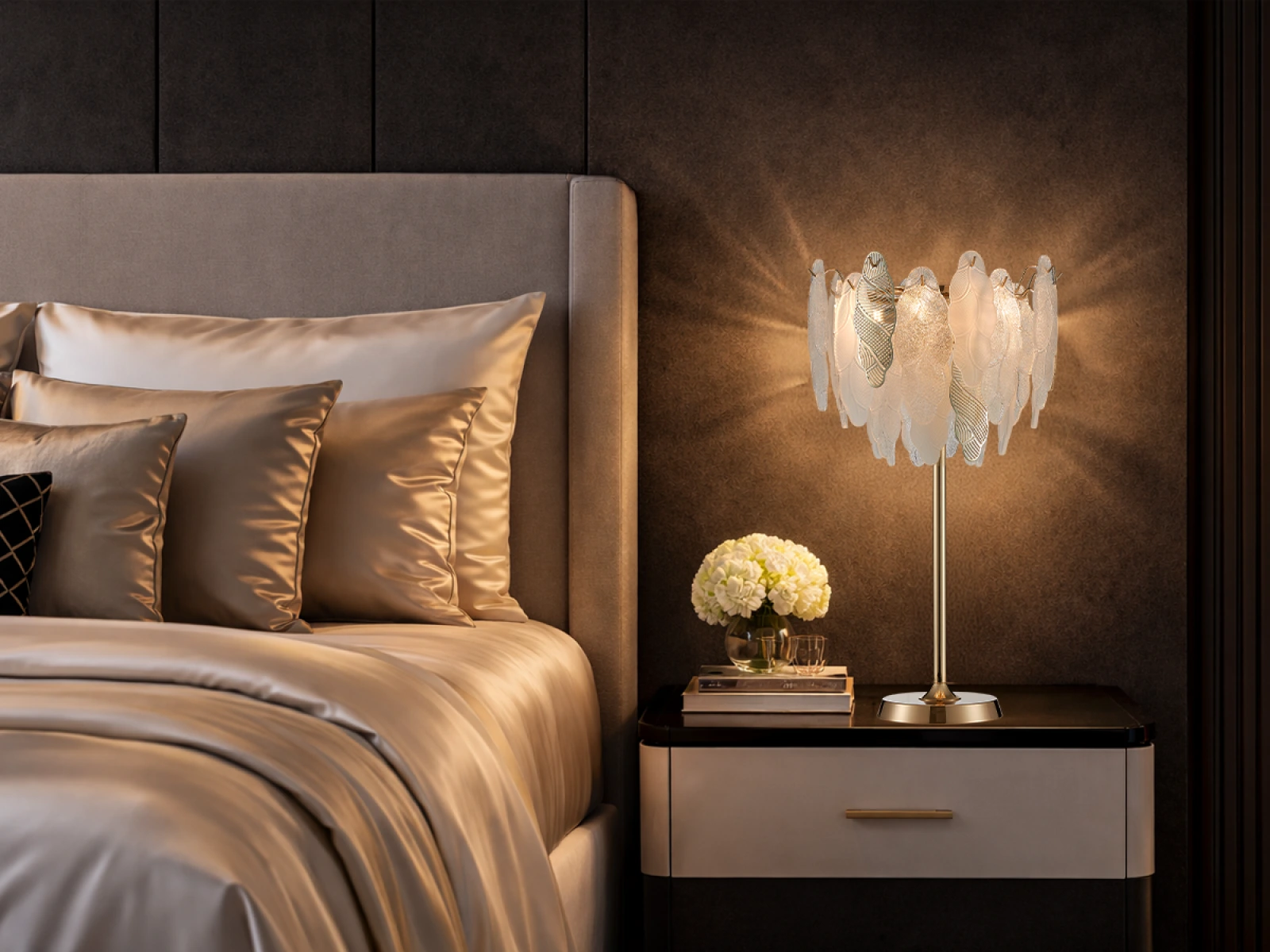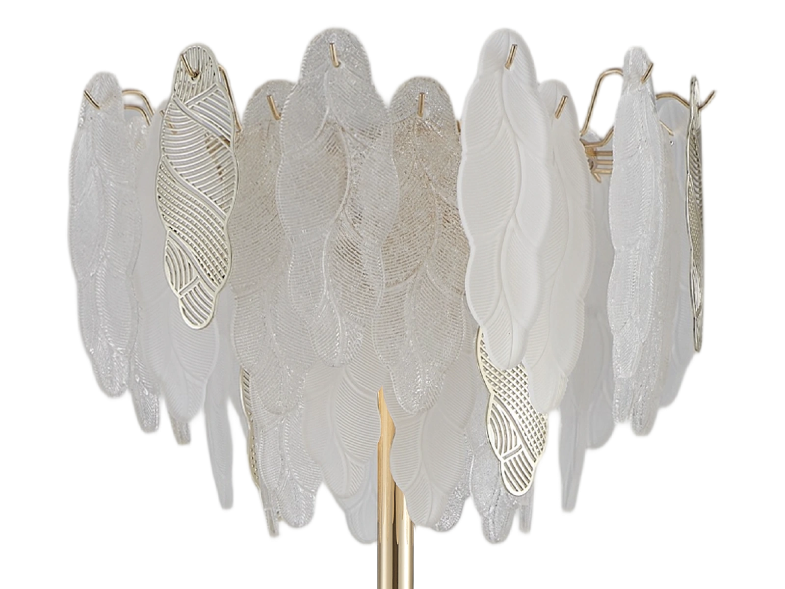 Jemná struktura skleněných prvků v kombinaci s dekorativními kovovými detailypodtrhuje luxusní a sofistikovaný charakter této kolekce.