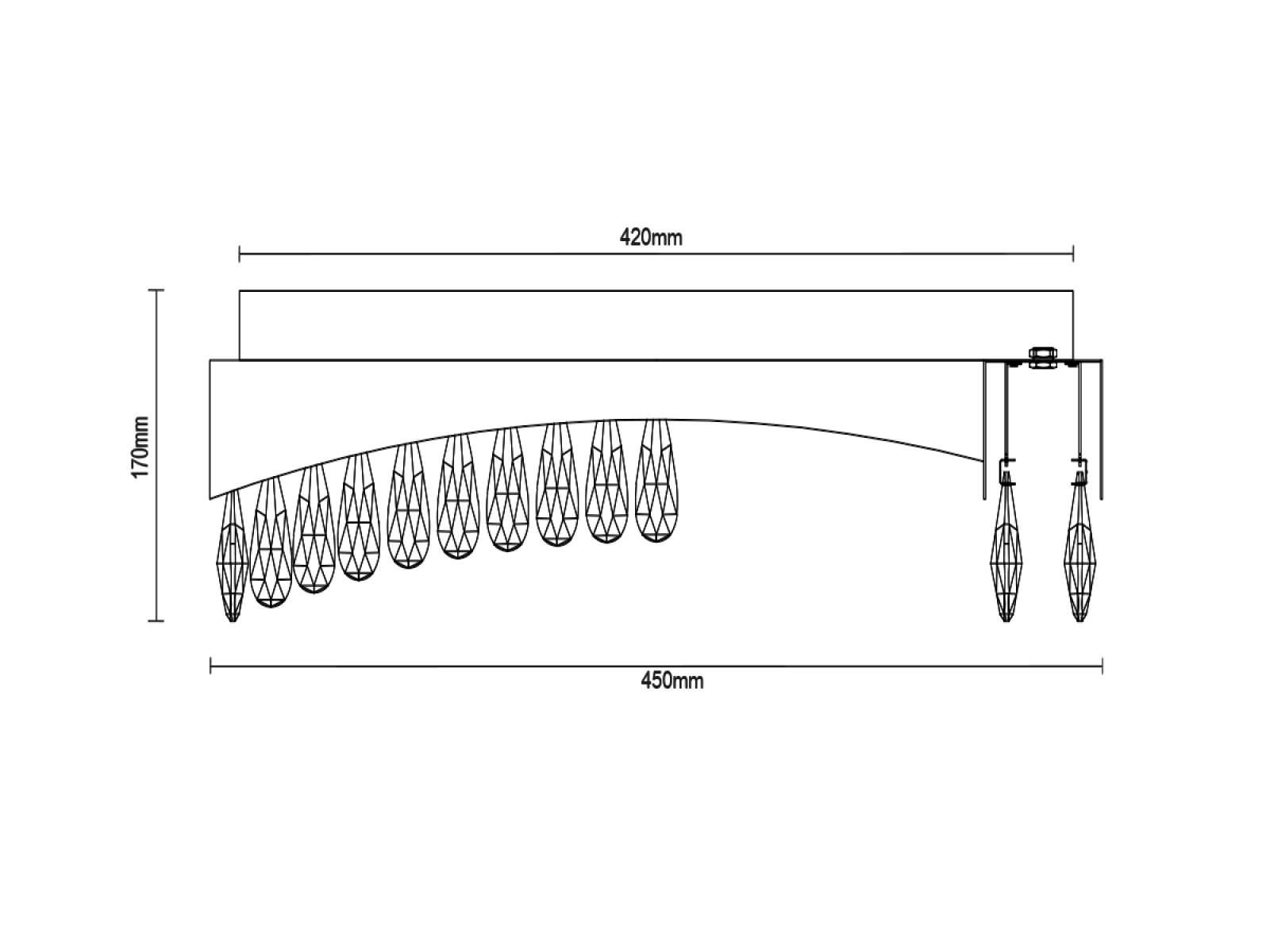 Svítidlo je vyrobeno z vysoce kvalitní nerezové oceli s prvotřídní povrchovou úpravou a je doplněno přesně broušenými krystaly, které zlepšují odraz a lom světla. Použitá technologie zpracování zajišťuje dlouhodobou stabilitu materiálu a zachování jeho estetického vzhledu.