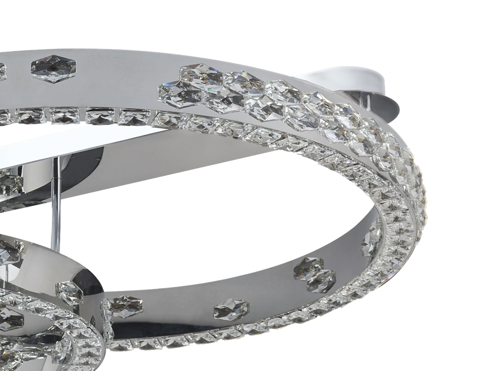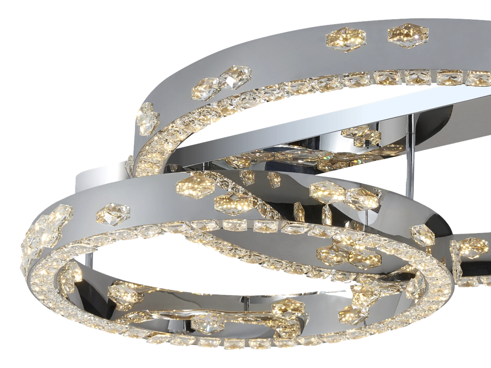 Kov z nerezové oceli s chromovanou povrchovou úpravou v kombinaci s precizně broušenými krystaly zajišťuje účinný odraz a lom světla. Díky vysoce kvalitní technologii zpracování si svítidlo dlouhodobě zachovává svůj vzhled i stálost materiálu.