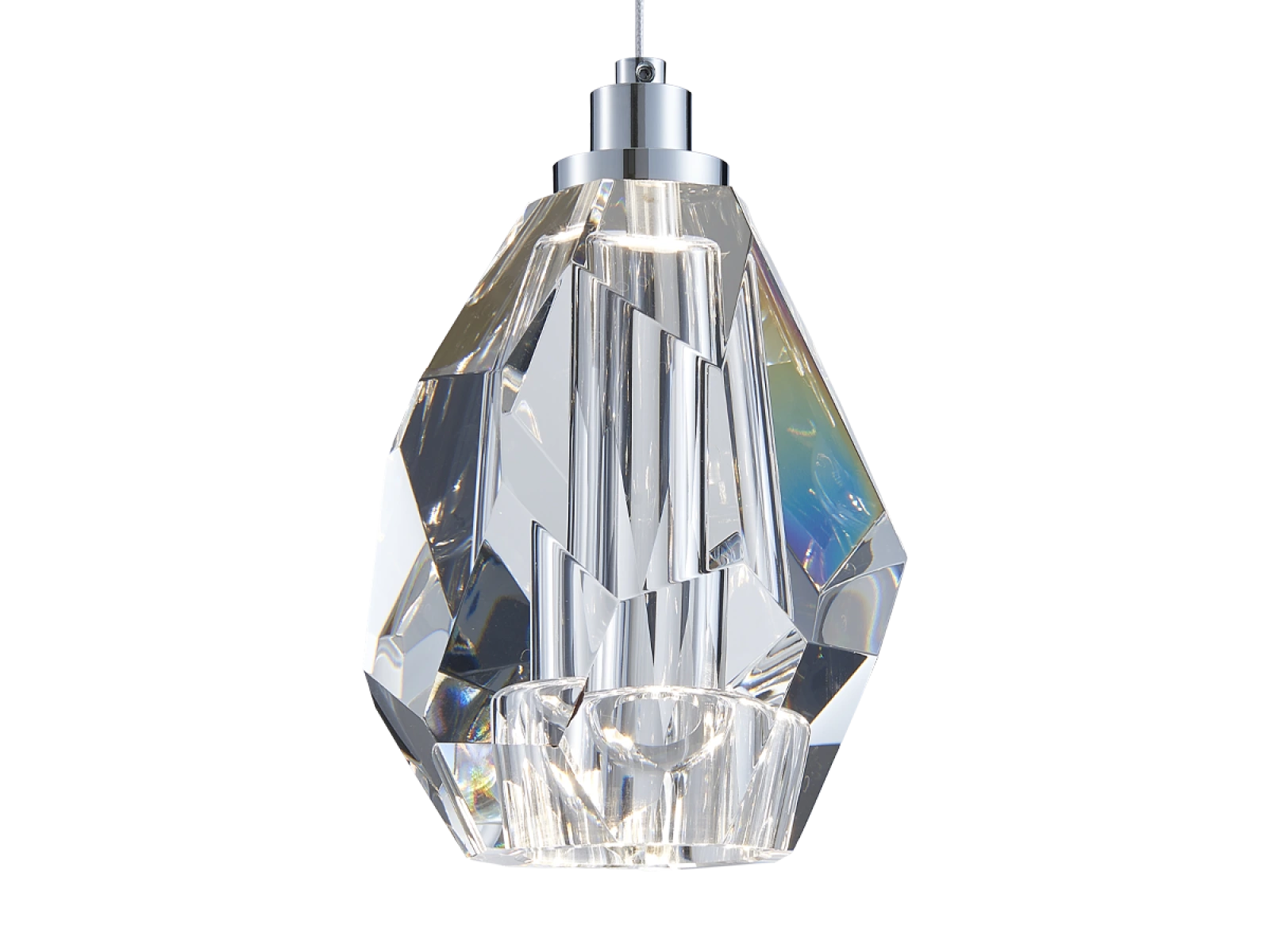 Konstrukce svítidla je vyrobena z vysoce kvalitní oceli s chromovanou povrchovou úpravou a doplněna přesně broušenými křišťálovými prvky s diamantovou strukturou. To vytváří jedinečný světelný efekt a luxusní jiskru v prostoru.