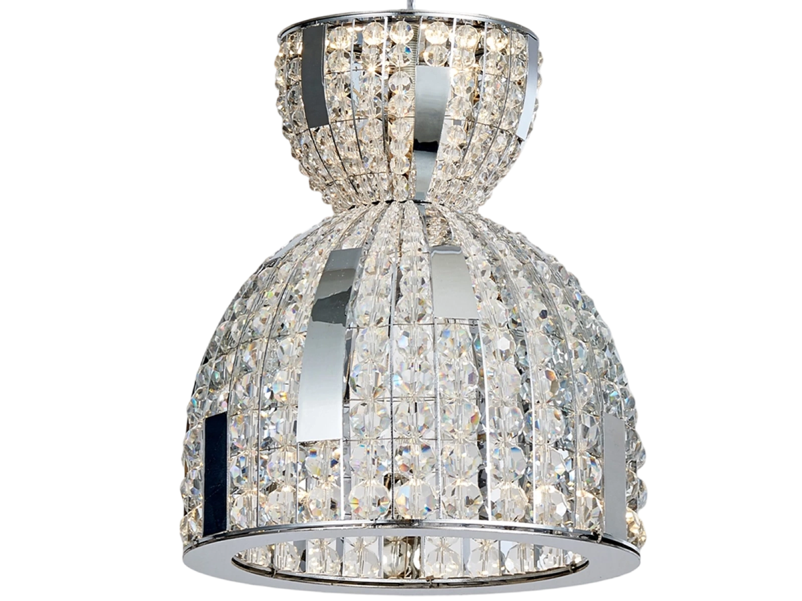 Konstrukce je vyrobena z nerezové oceli a doplněna broušenými krystaly, které zajišťují intenzivní lom a odraz světla. Díky kvalitnímu zpracování si svítidlo zachovává estetický vzhled a stabilitu i při dlouhodobém používání.