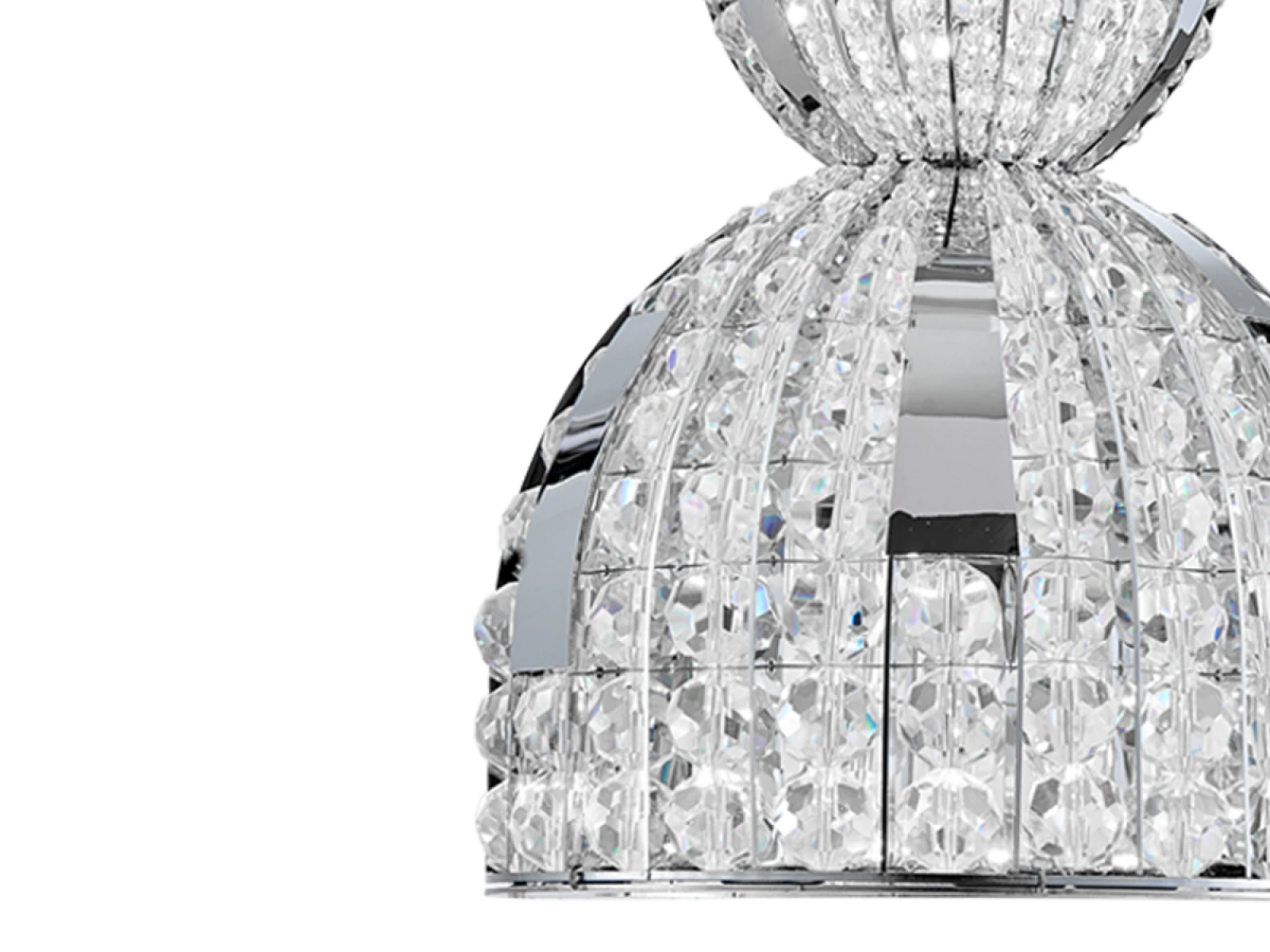 Konstrukce je vyrobena z nerezové oceli a doplněna broušenými krystaly, které zajišťují intenzivní lom a odraz světla. Díky kvalitnímu zpracování si svítidlo zachovává estetický vzhled a stabilitu i při dlouhodobém používání.