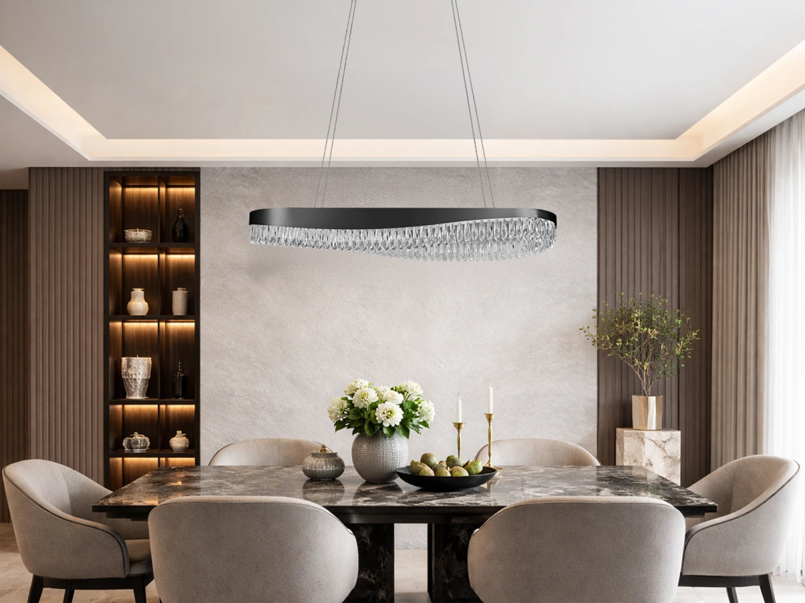 Svítidlo je vyrobeno z vysoce kvalitního nerezového kovu s prvotřídní povrchovou úpravou a doplněno precizně broušenými krystaly, které zlepšují odraz i lom světla. Moderní technologie zpracování zajišťuje dlouhodobou stabilitu materiálu a zachování jeho estetického vzhledu.