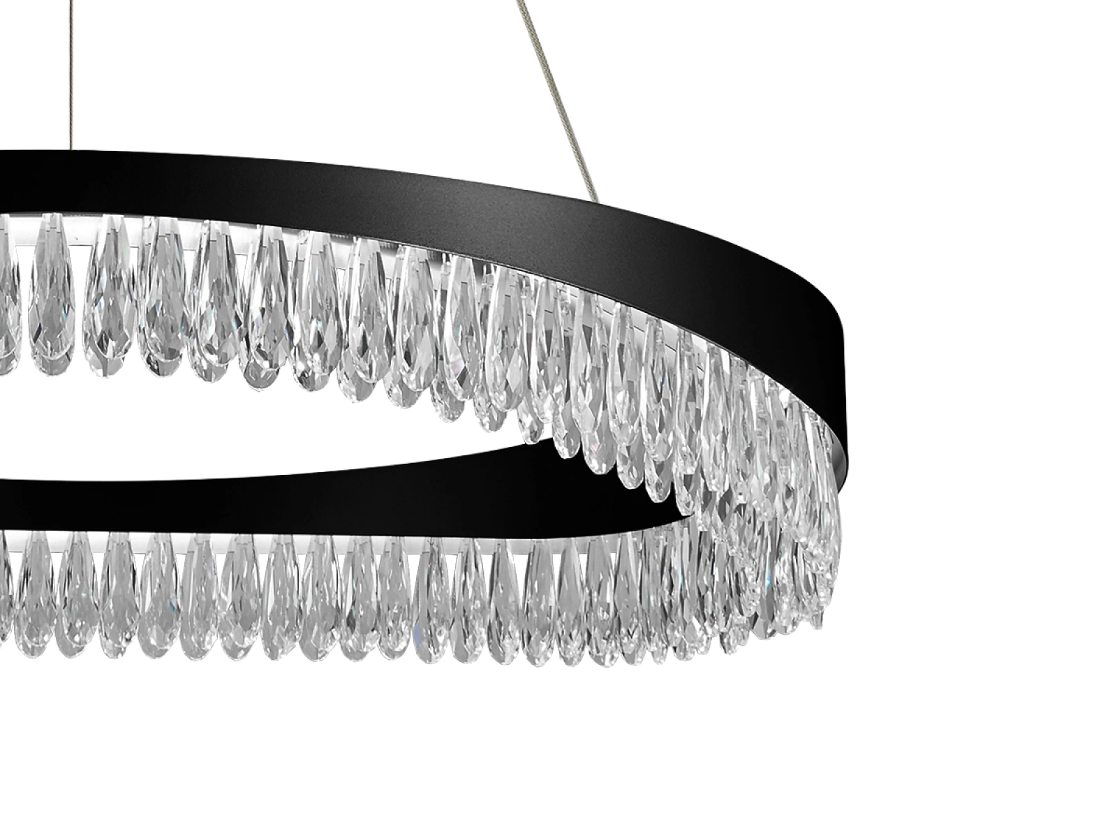 Kovový povrch svítidla z nerezové oceli s prémiovou povrchovou úpravou je doplněn detailně broušenými krystaly, které zdůrazňují lom a odraz světla. Moderní zpracování zaručuje stabilitu materiálu a jeho estetickou kvalitu i po dlouhodobém používání.