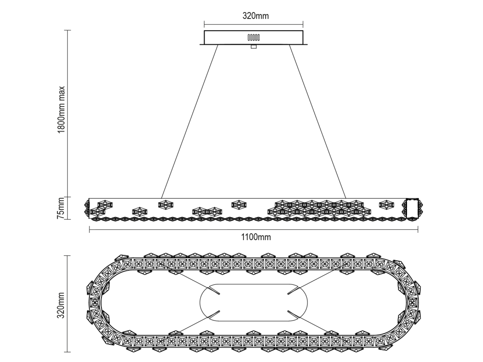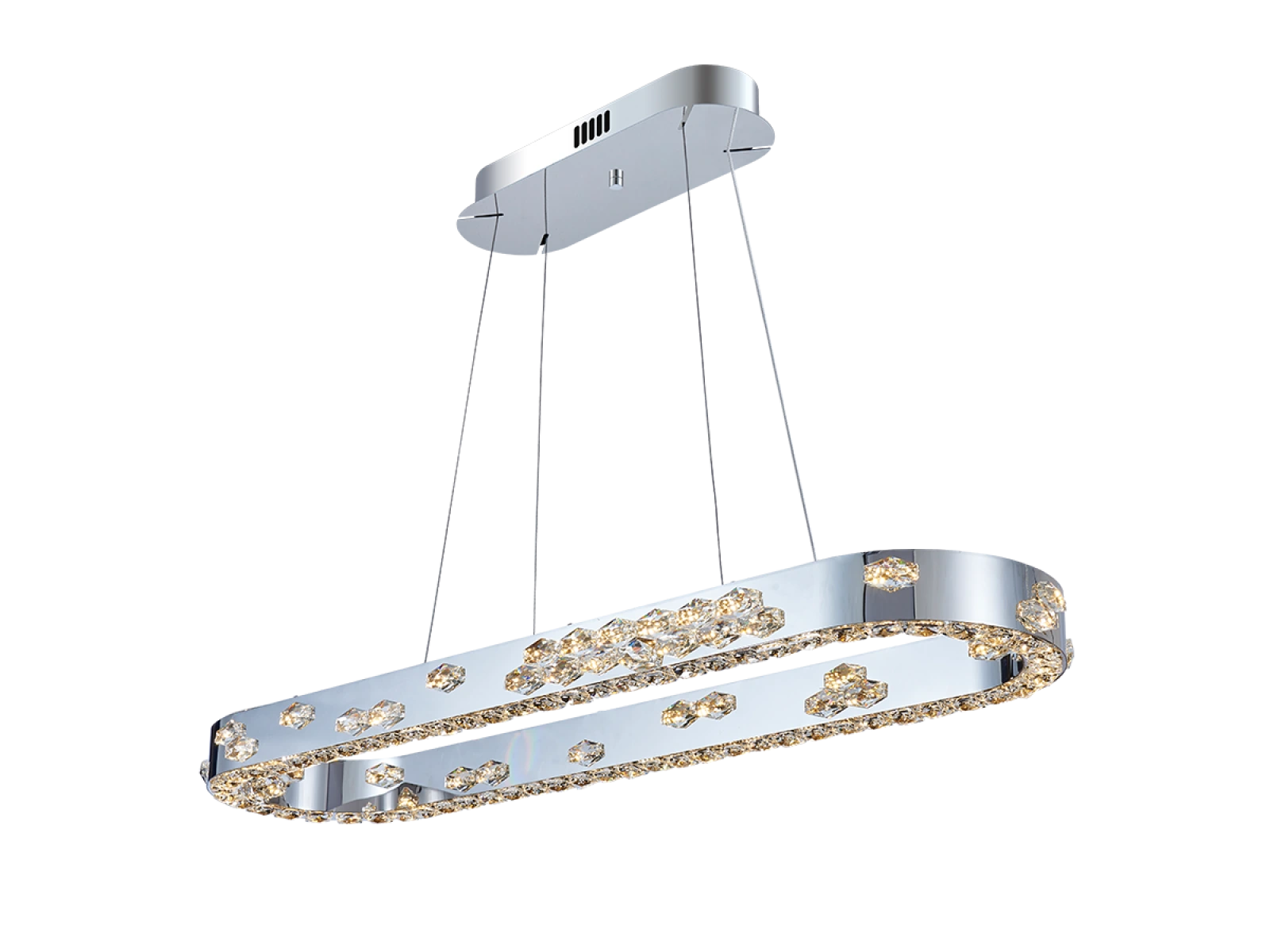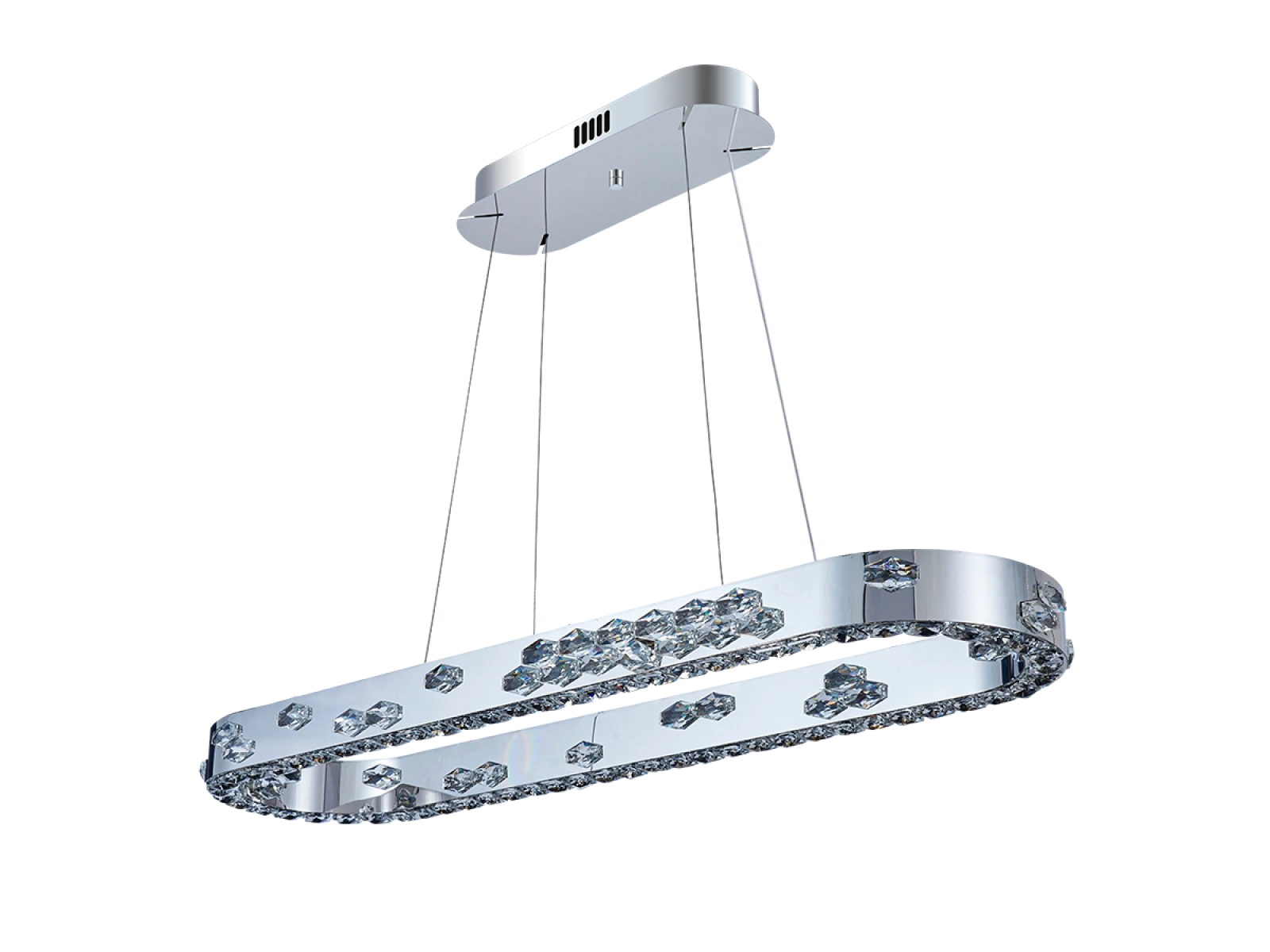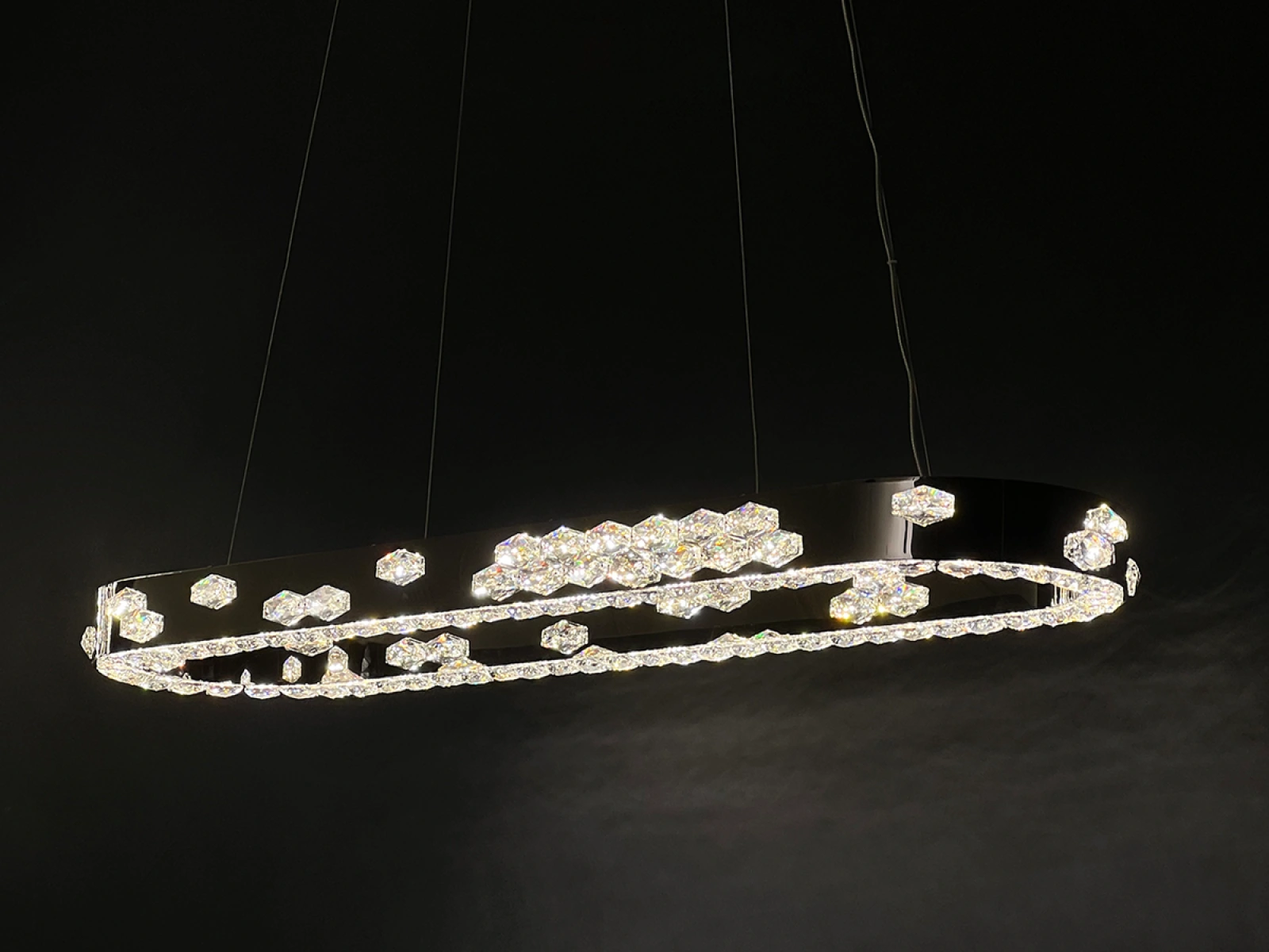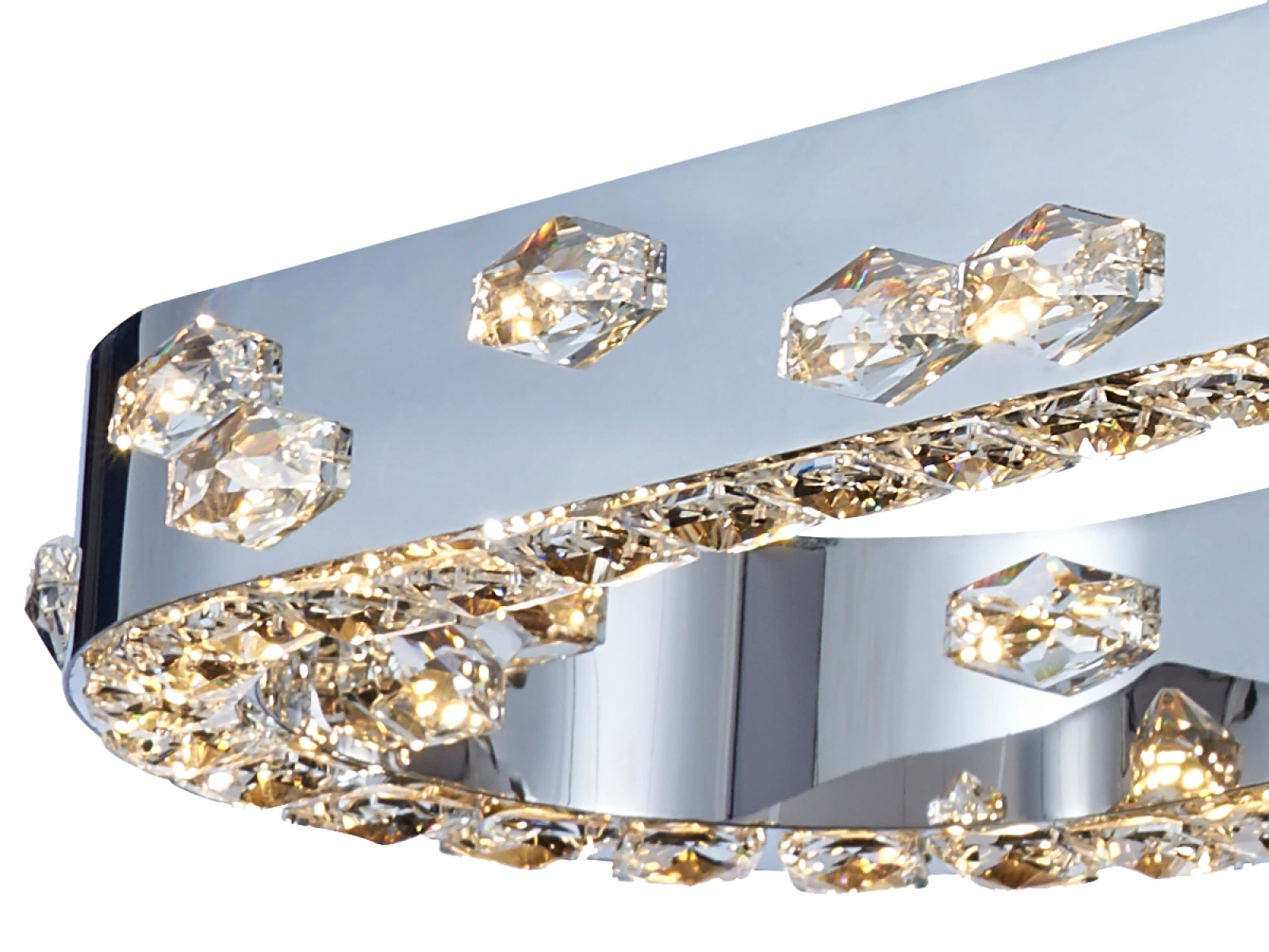 Svítidlo je vyrobeno z odolného kovu z nerezové oceli s chromovanou povrchovou úpravou a jeho design doplňují precizně broušené krystaly, které podporují odraz a lom světla. Technologie zpracování zaručuje stabilitu materiálu a zachování estetických vlastností.