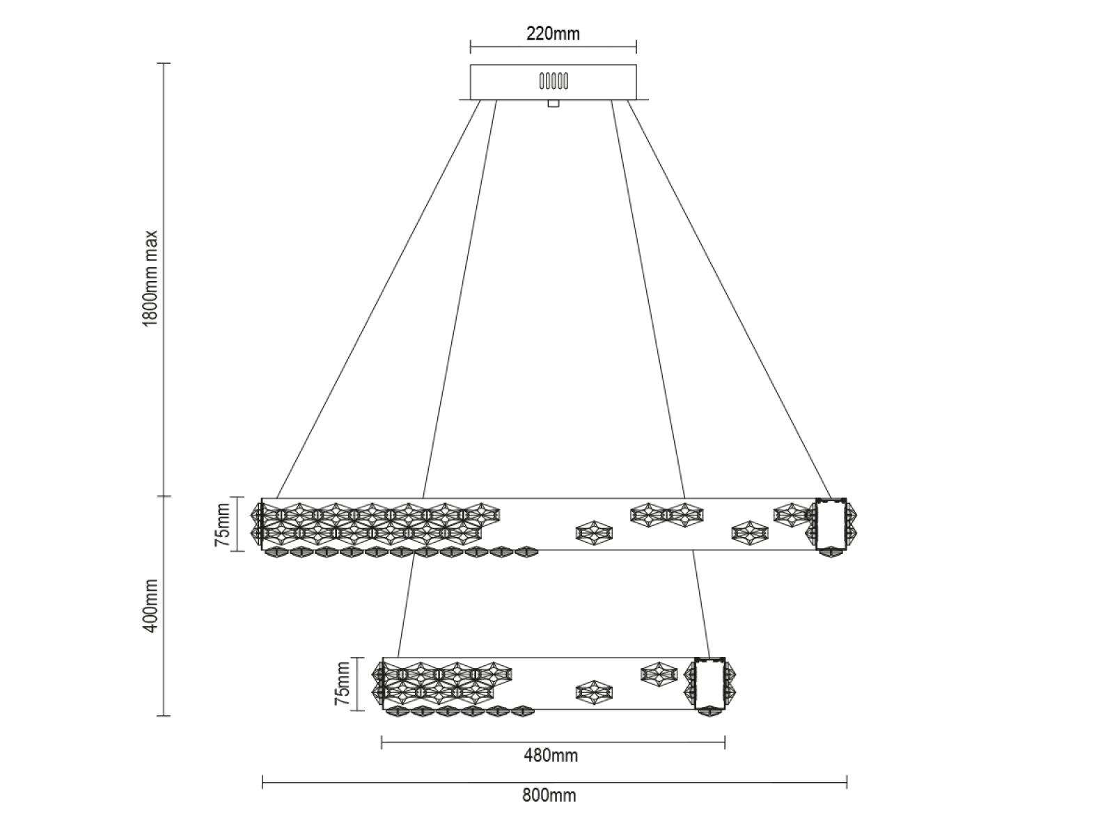 Svítidlo je vyrobeno z vysoce kvalitní nerezové oceli s chromovanou povrchovou úpravou a je doplněno broušenými krystaly, které zlepšují odraz a lom světla. Použitá technologie výroby zaručuje stabilitu materiálu a dlouhodobé zachování jeho vizuálních vlastností.
