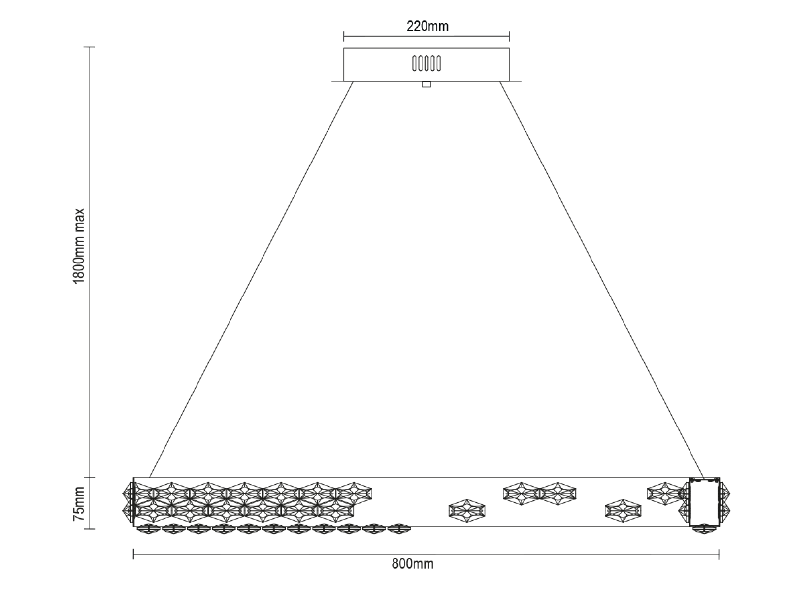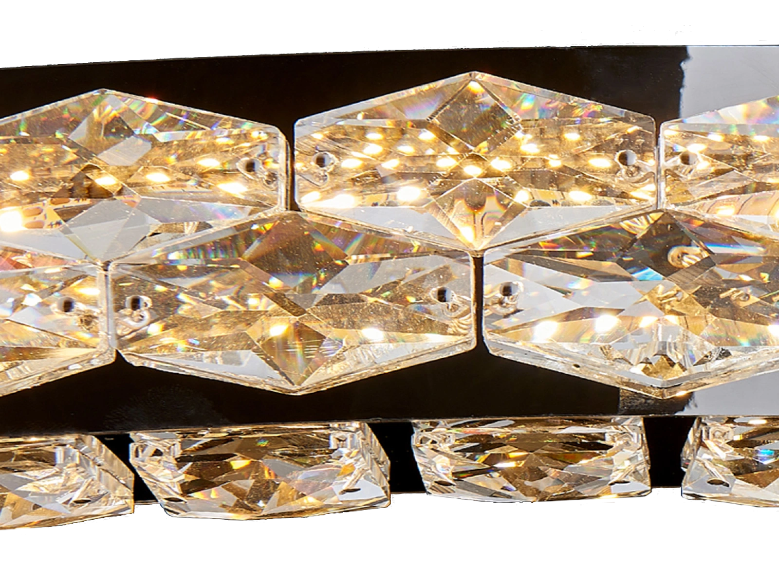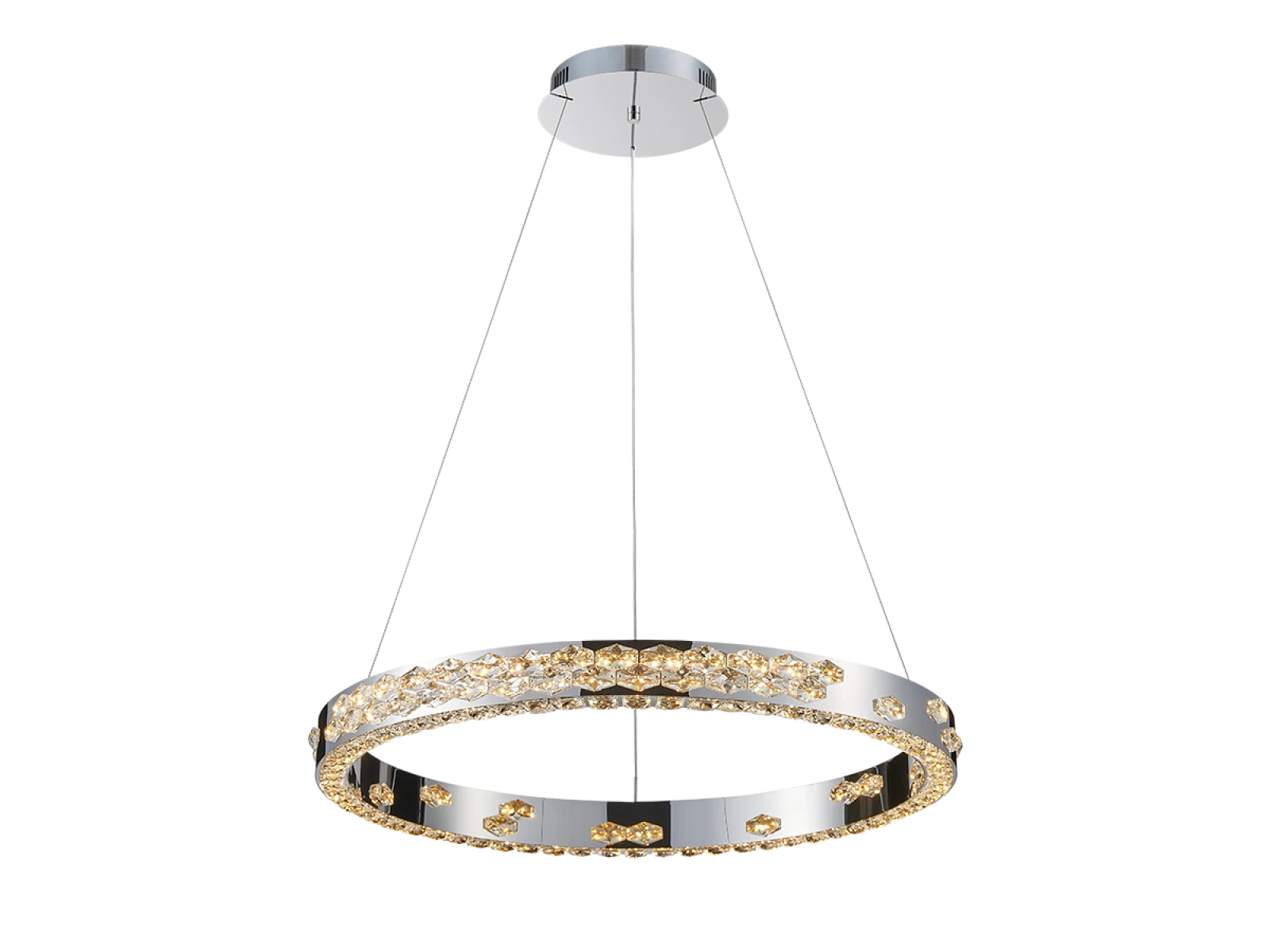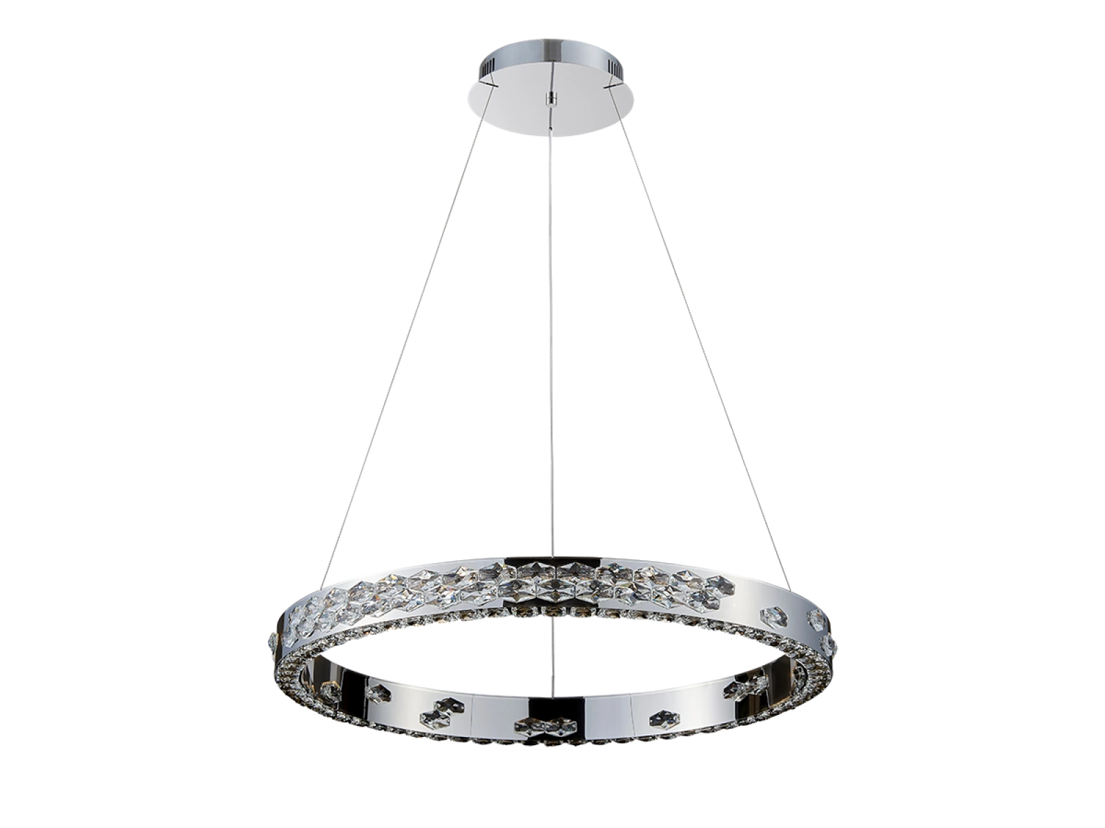 Svítidlo kombinuje kov z nerezové oceli s chromovanou povrchovou úpravou a přesně broušené krystaly, které účinně pracují se světlem a zvyšují jeho odraz i lom. Kvalitní zpracování zajišťuje dlouhou životnost a zachování estetického vzhledu.