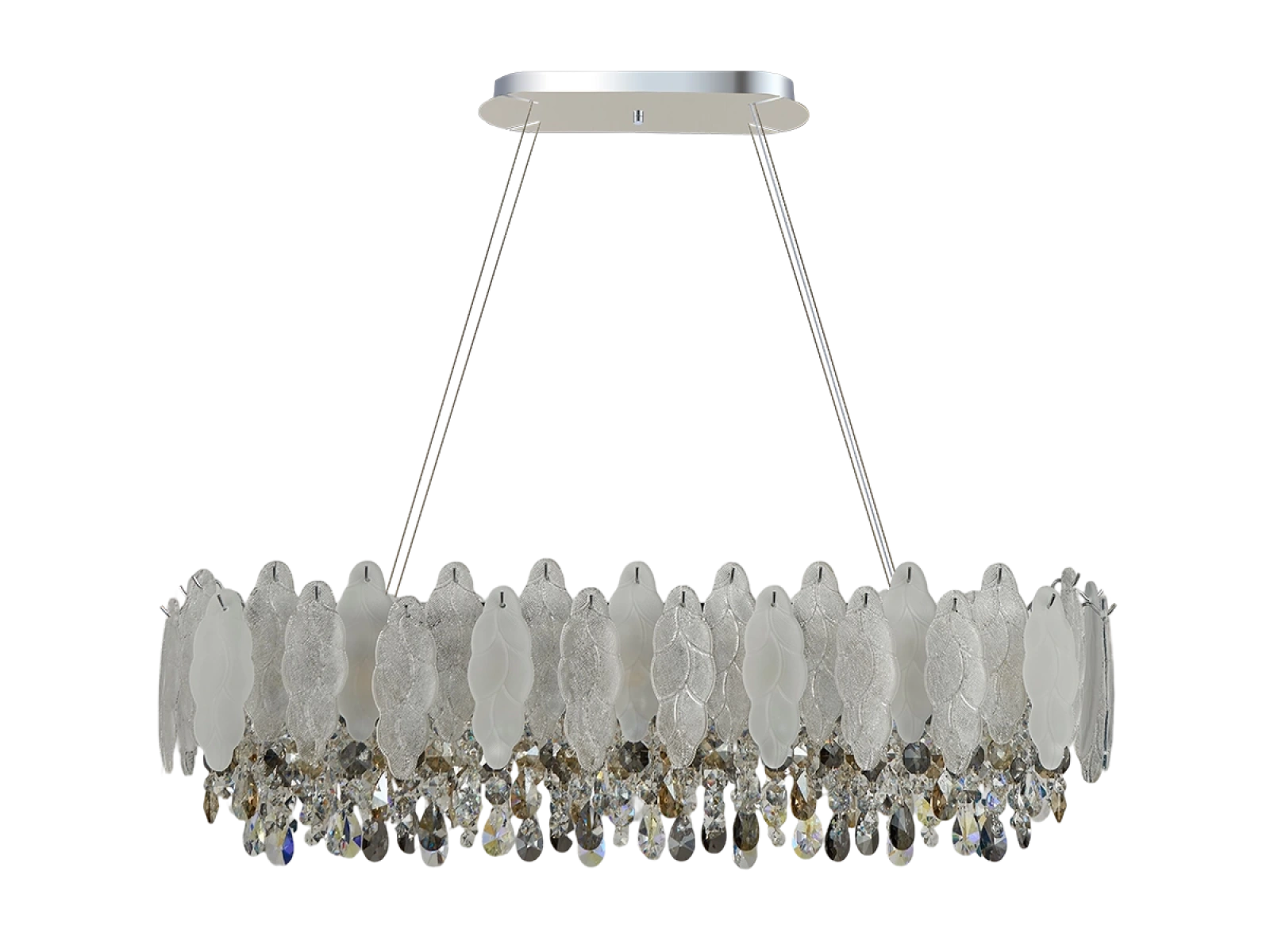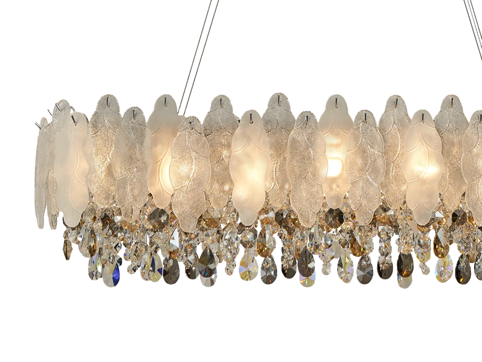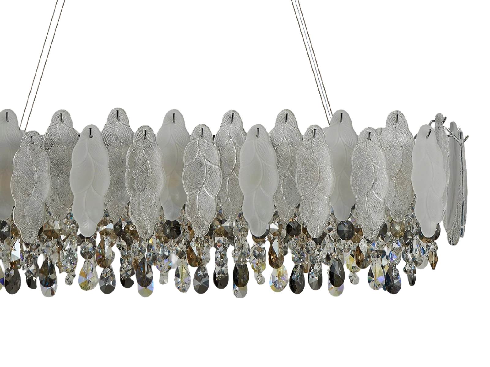 kombinace kovové konstrukce se skleněnými a broušenými křišťálovými prvky