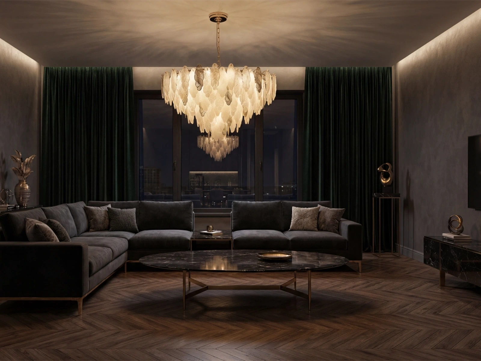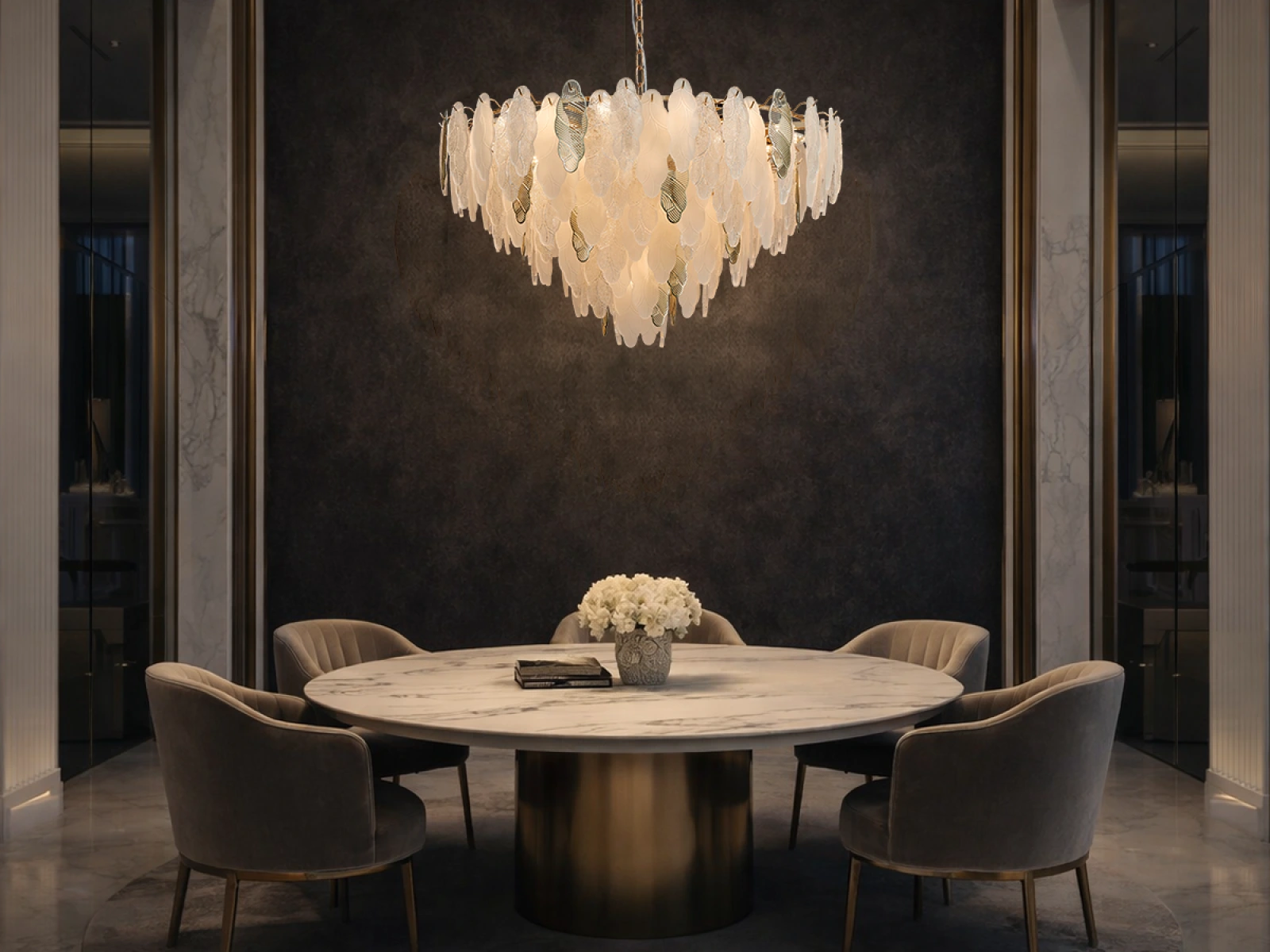 Závěsné svítidlo CHOREO od společnosti VIZARDI je elegantní designové osvětlení s výrazným dekorativním charakterem. Precizní uspořádání jednotlivých prvků vytváří harmonickou kompozici s jedinečným světelným efektem a dodává prostoru výrazný vizuální akcent. Svítidlo je vhodné do obývacího pokoje, jídelny, ložnice a reprezentativních interiérů.