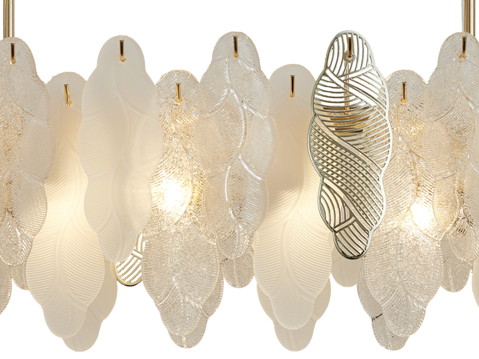 Jemná struktura skleněných prvků v kombinaci s dekorativními kovovými detaily podtrhuje luxusní a sofistikovaný charakter této kolekce.