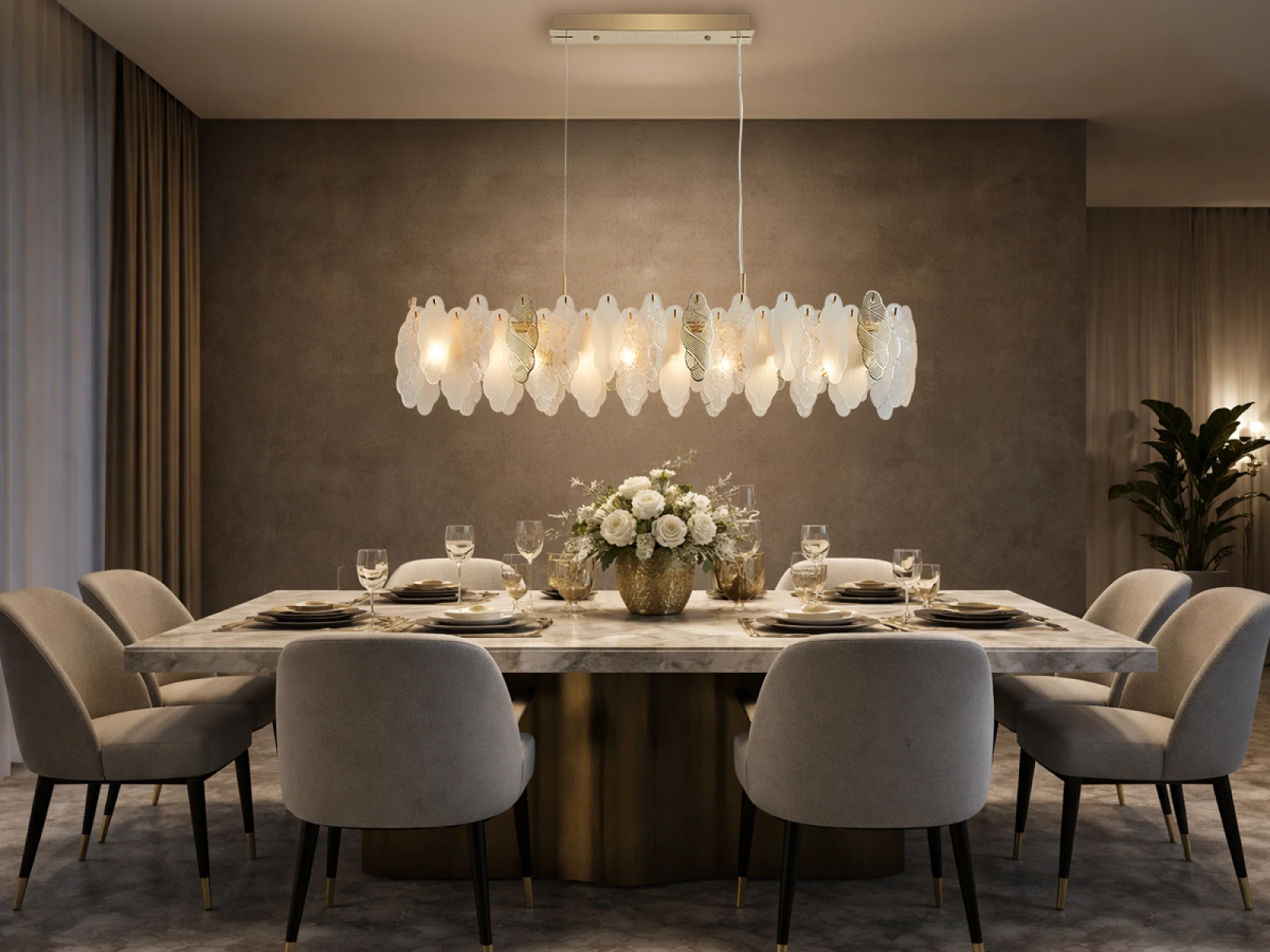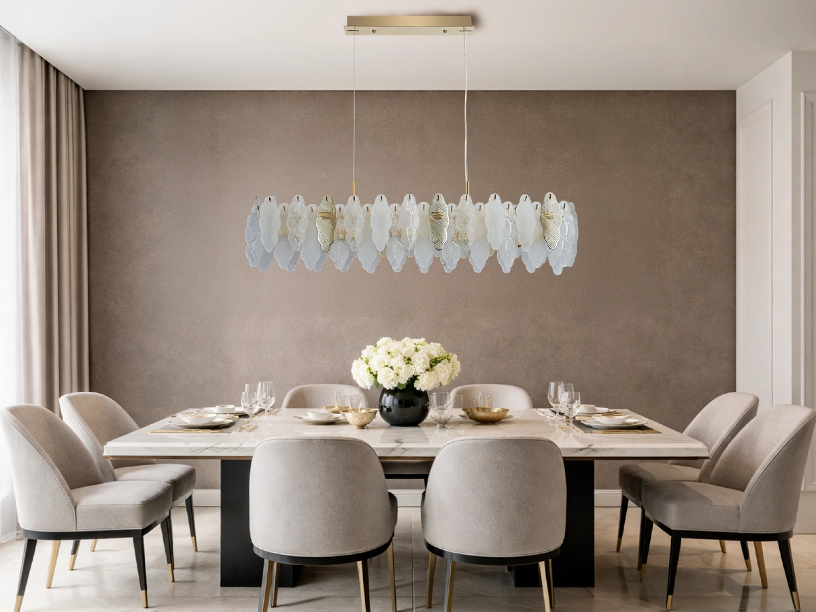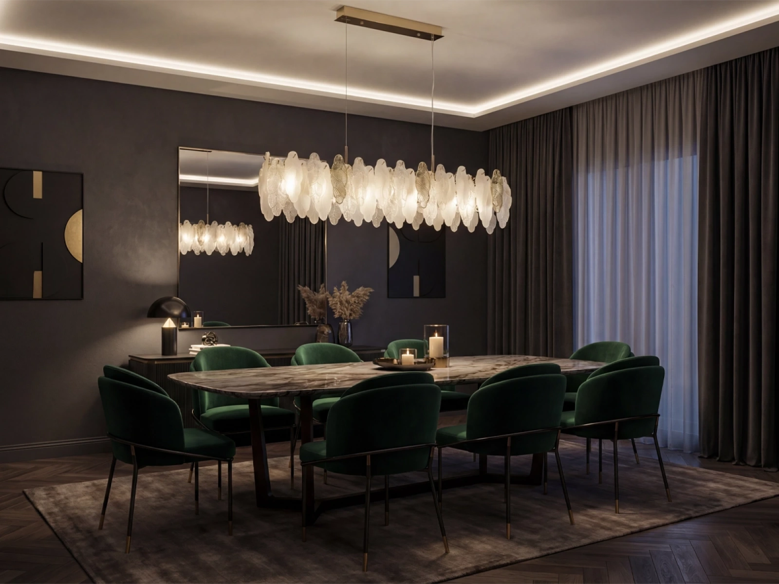 Závěsné svítidlo CHOREO od společnosti VIZARDI je elegantní designové osvětlení s výrazným dekorativním charakterem. Precizní uspořádání jednotlivých prvků vytváří harmonickou kompozici s jedinečným světelným efektem a dodává prostoru výrazný vizuální akcent. Svítidlo je vhodné do obývacího pokoje, jídelny, ložnice a reprezentativních interiérů.