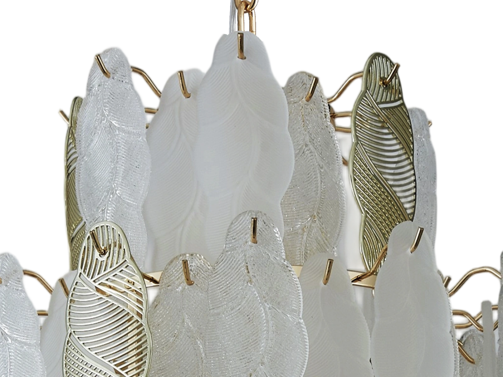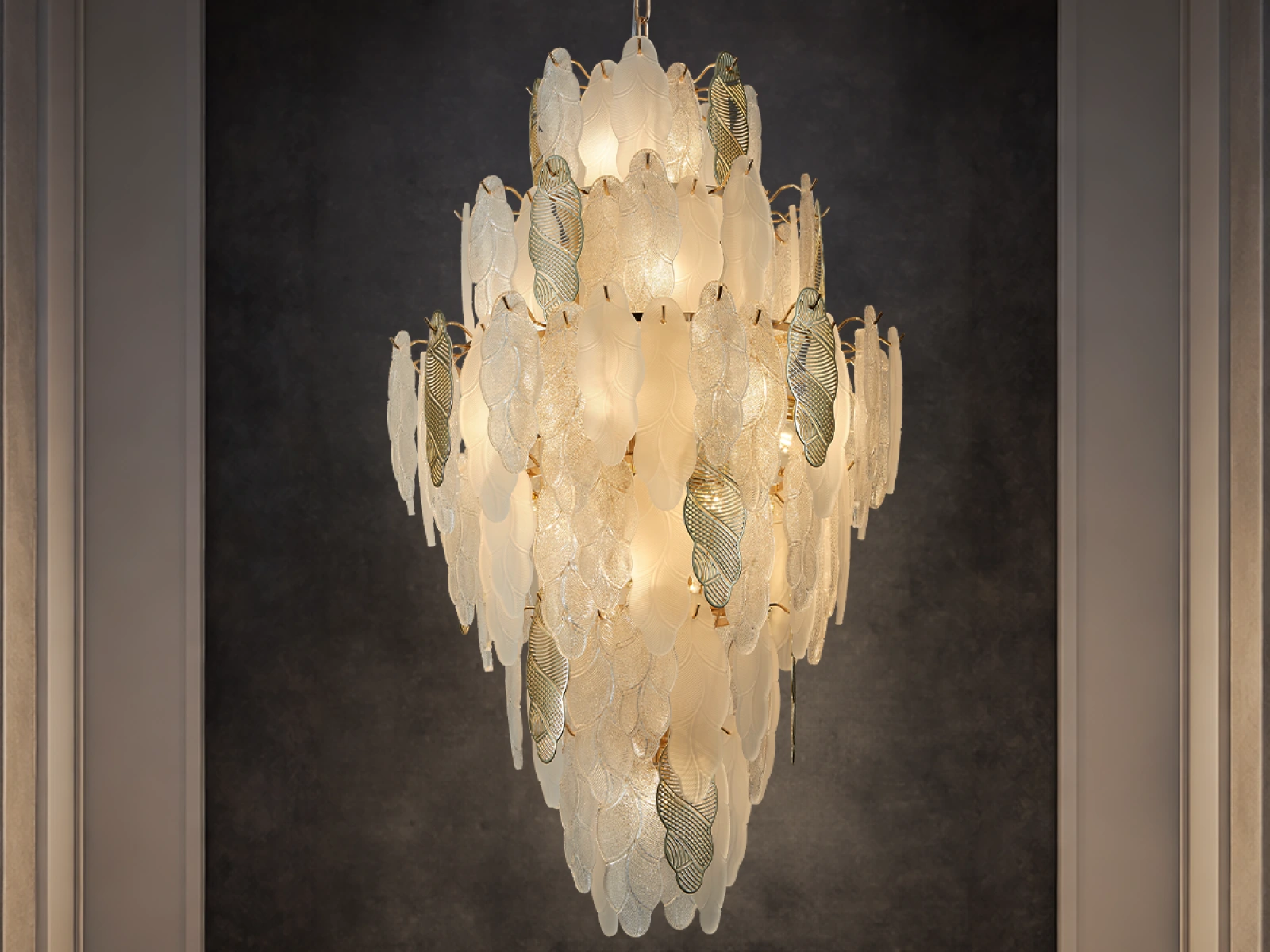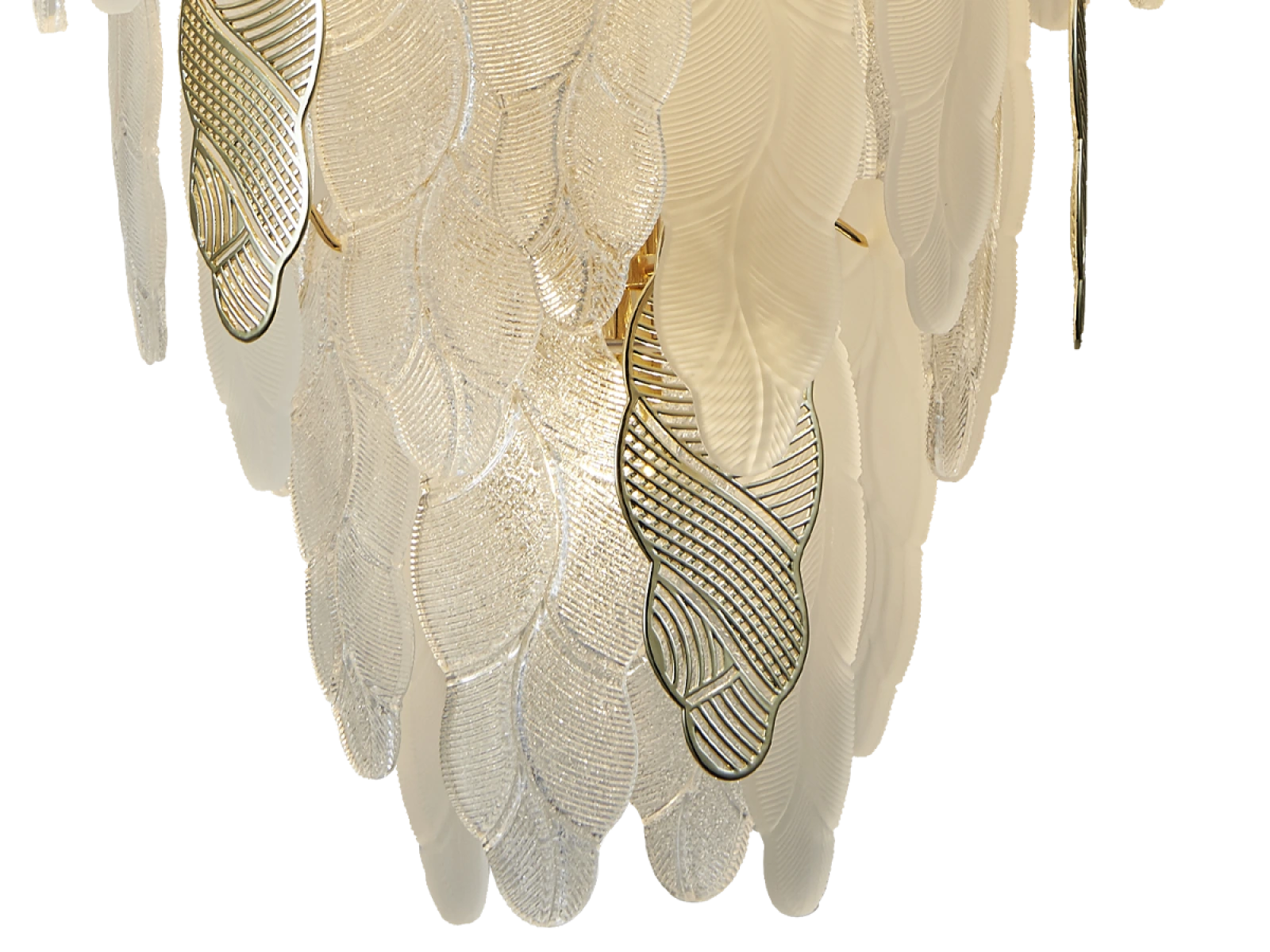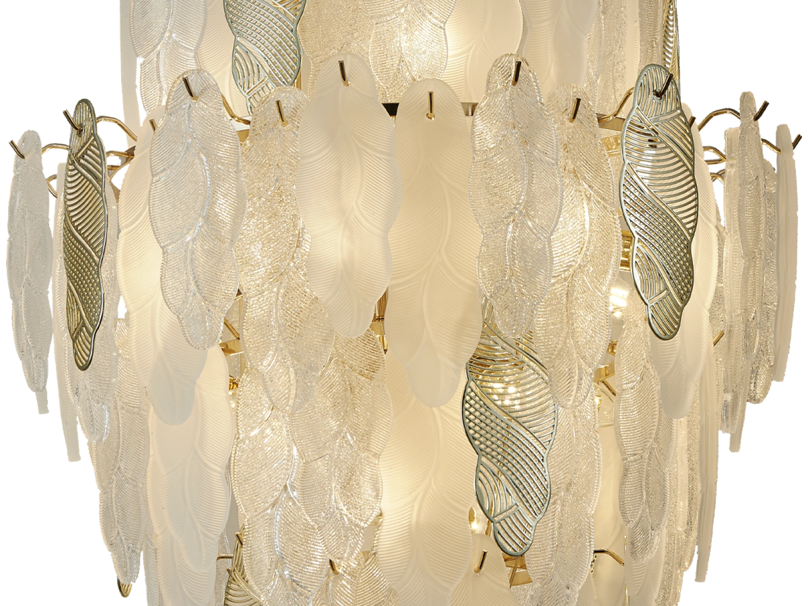 Jemná struktura skleněných prvků v kombinaci s dekorativními kovovými detaily podtrhuje luxusní a sofistikovaný charakter této kolekce.
