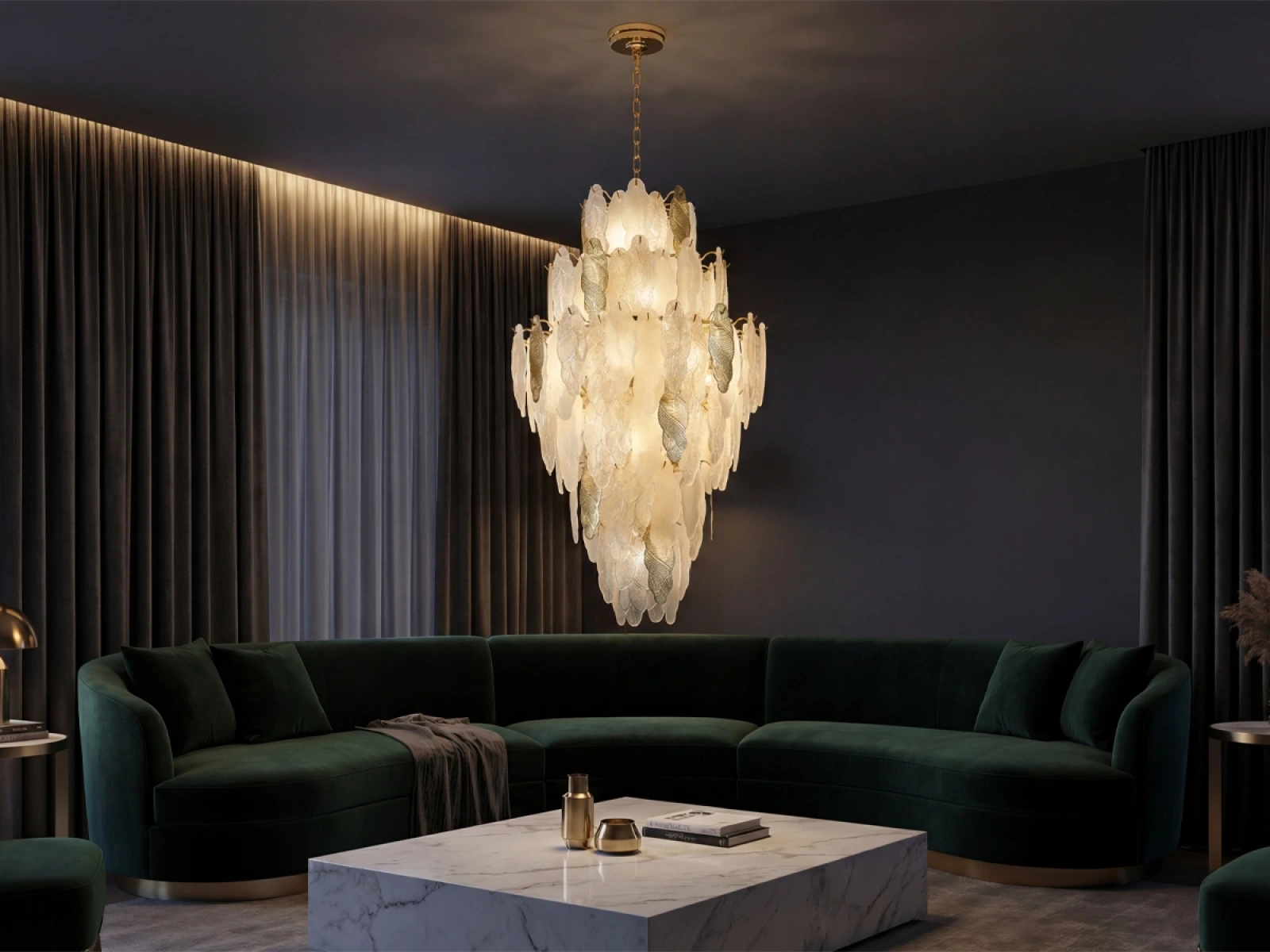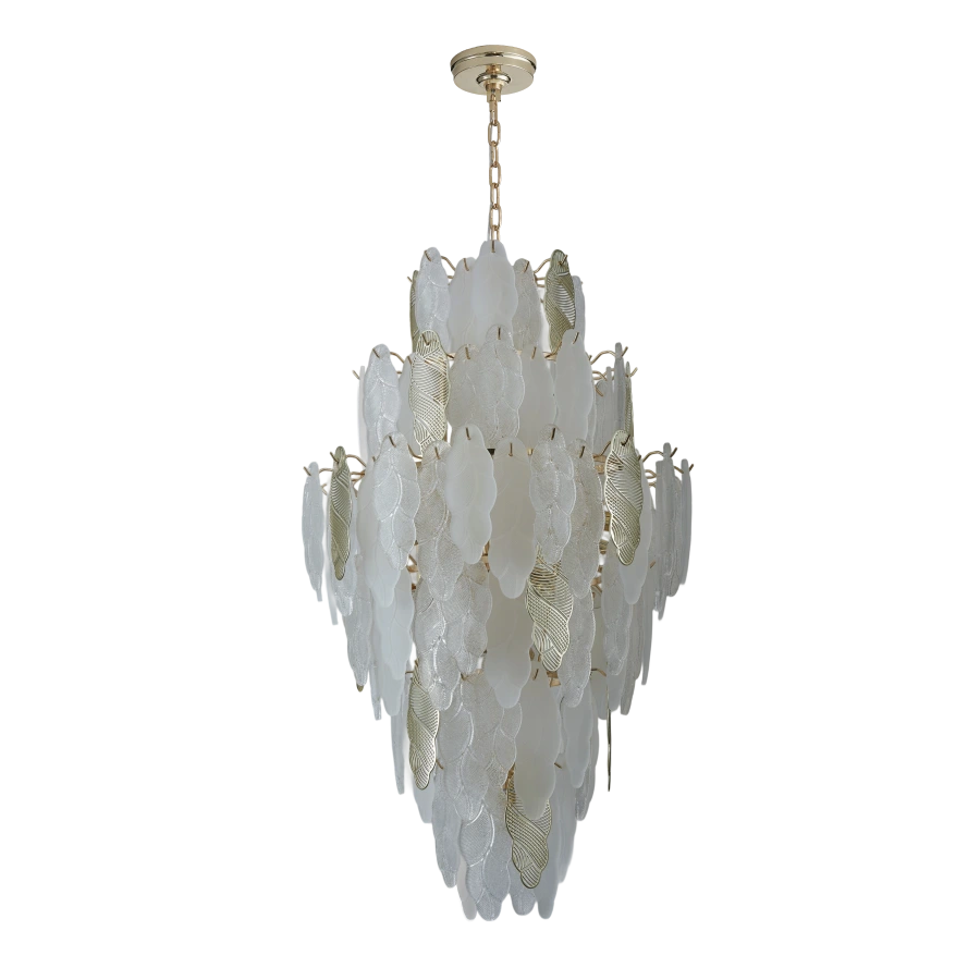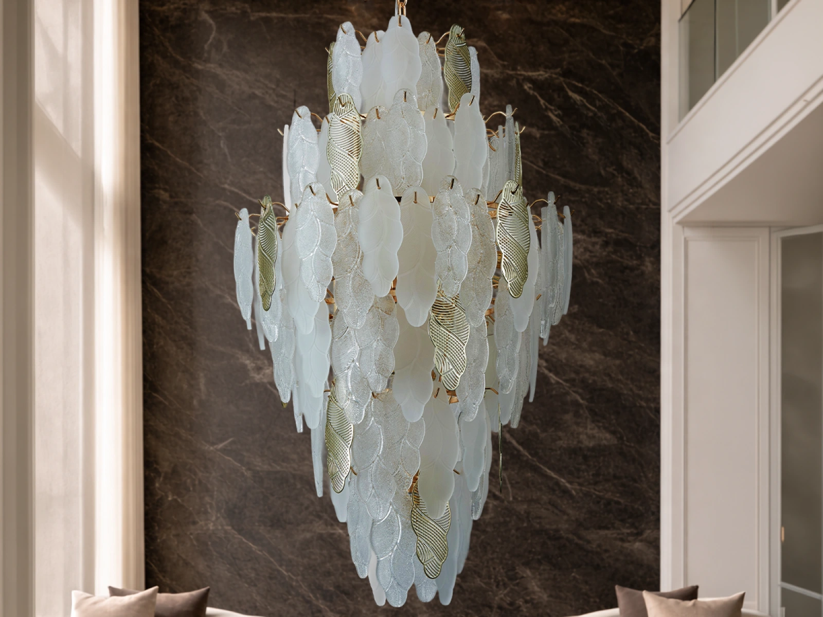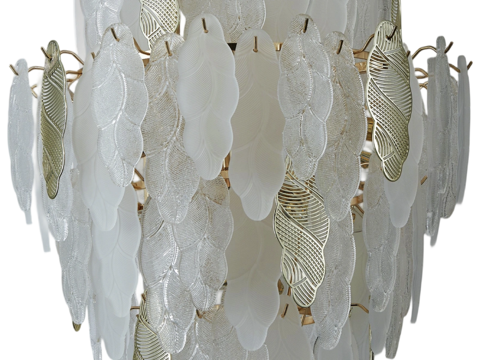Jemná struktura skleněných prvků v kombinaci s dekorativními kovovými detaily podtrhuje luxusní a sofistikovaný charakter této kolekce.