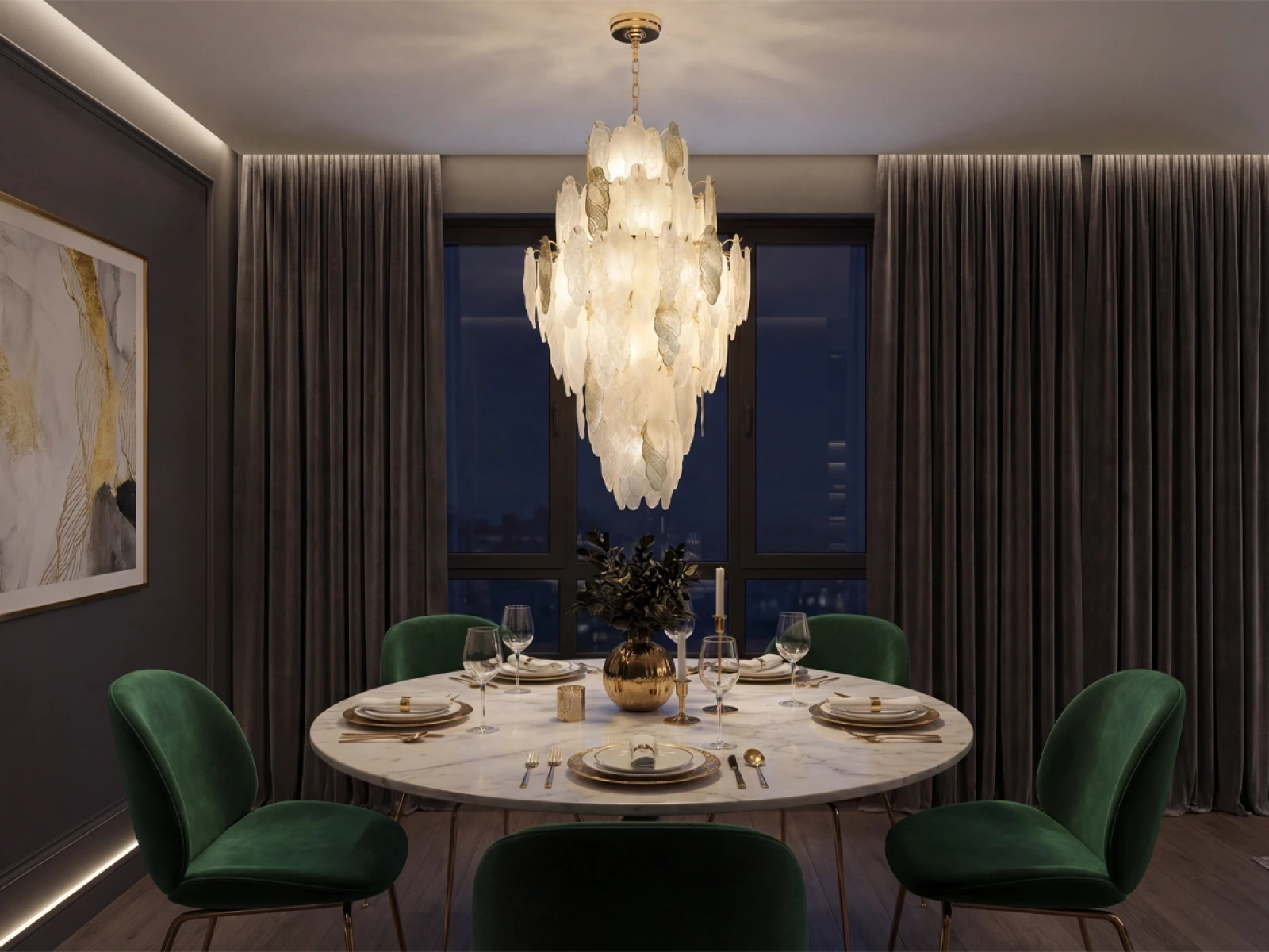 Závěsné svítidlo CHOREO od společnosti VIZARDI je elegantní designové osvětlení s výrazným dekorativním charakterem. Precizní uspořádání jednotlivých prvků vytváří harmonickou kompozici s jedinečným světelným efektem a dodává prostoru výrazný vizuální akcent. Svítidlo je vhodné do obývacího pokoje, jídelny, ložnice a reprezentativních interiérů.