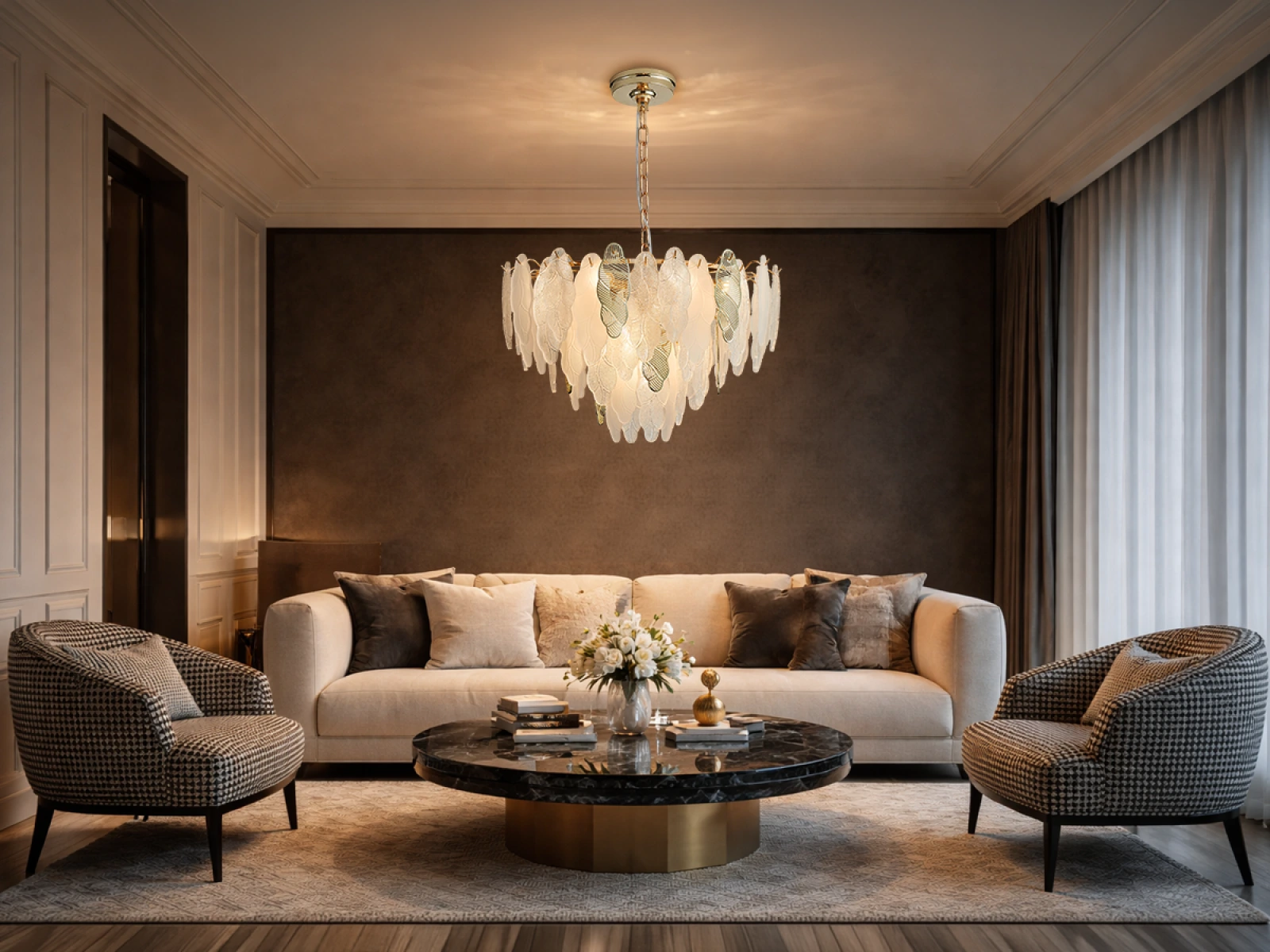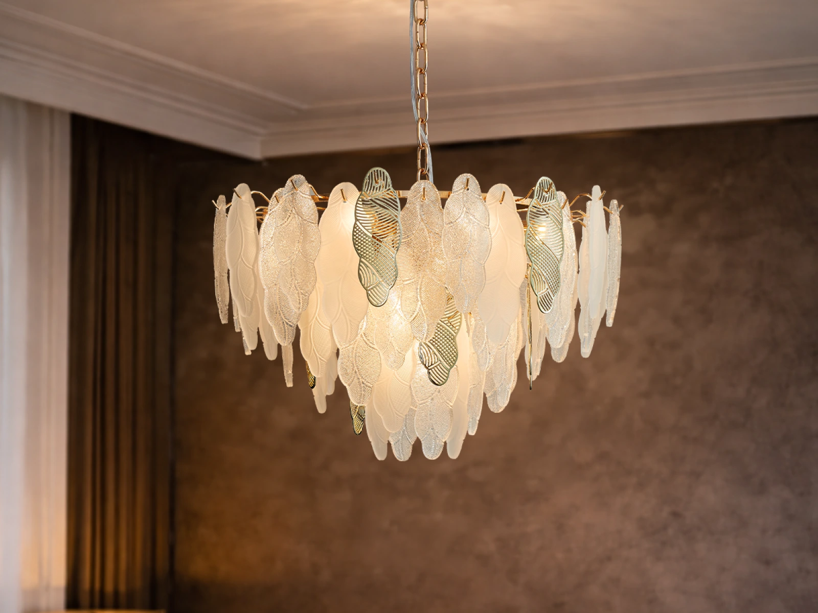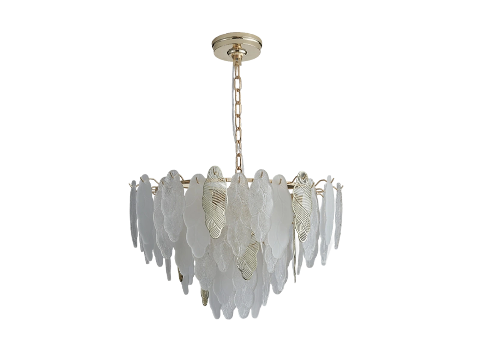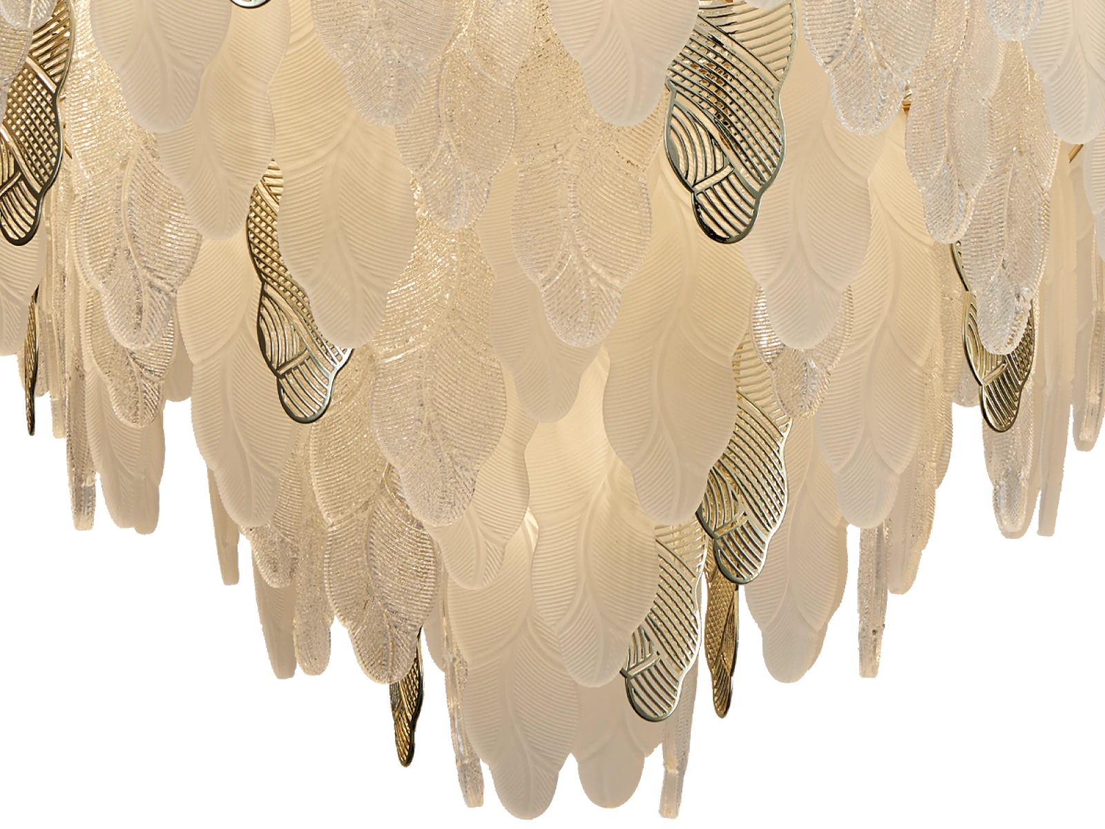 Jemná struktura skleněných prvků v kombinaci s dekorativními kovovými detaily podtrhuje luxusní a sofistikovaný charakter této kolekce.